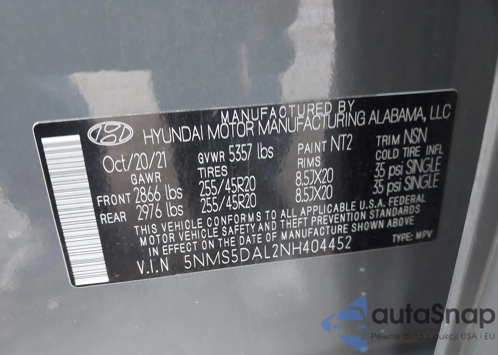 • VIN 5NMS5DAL2NH404452