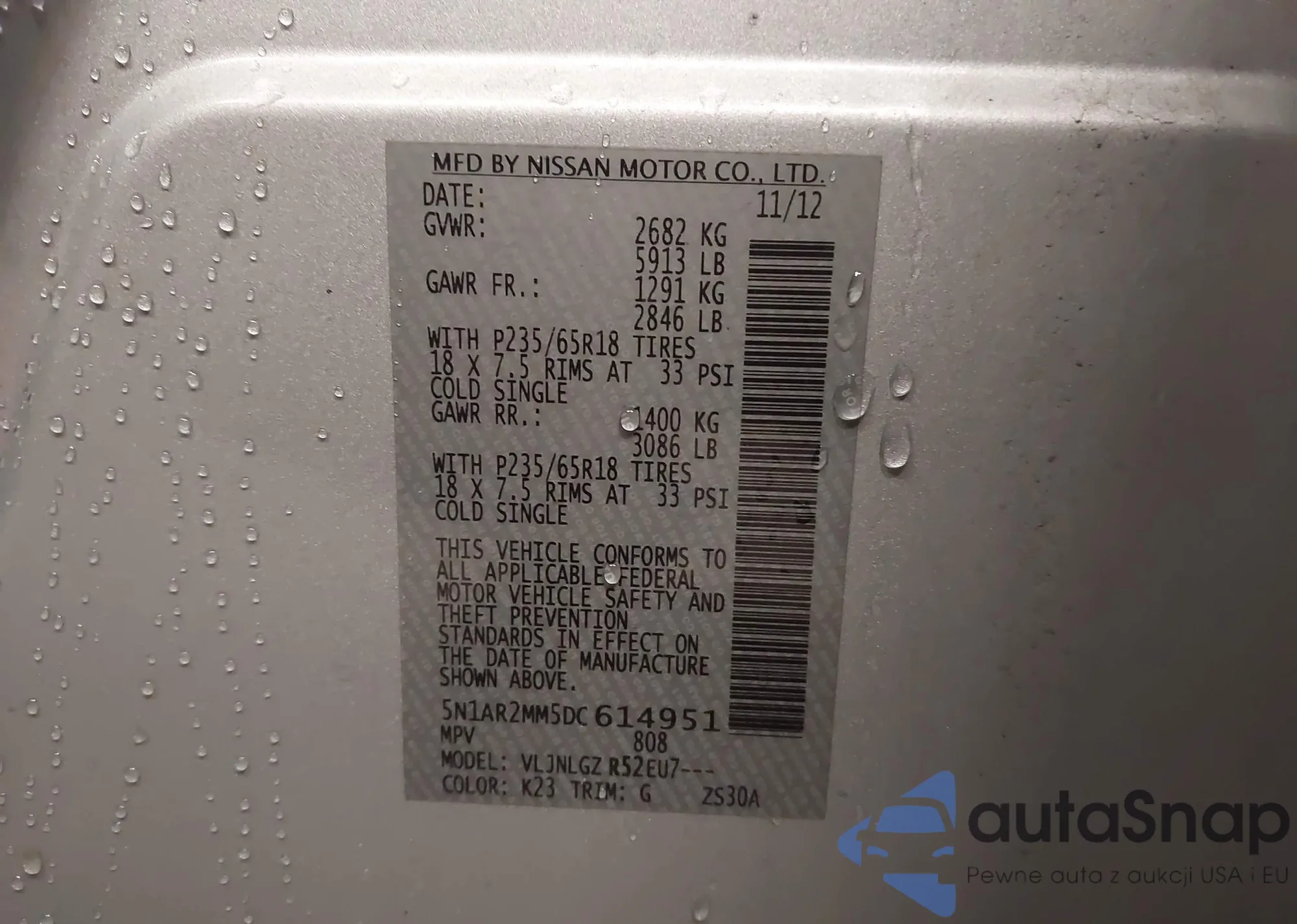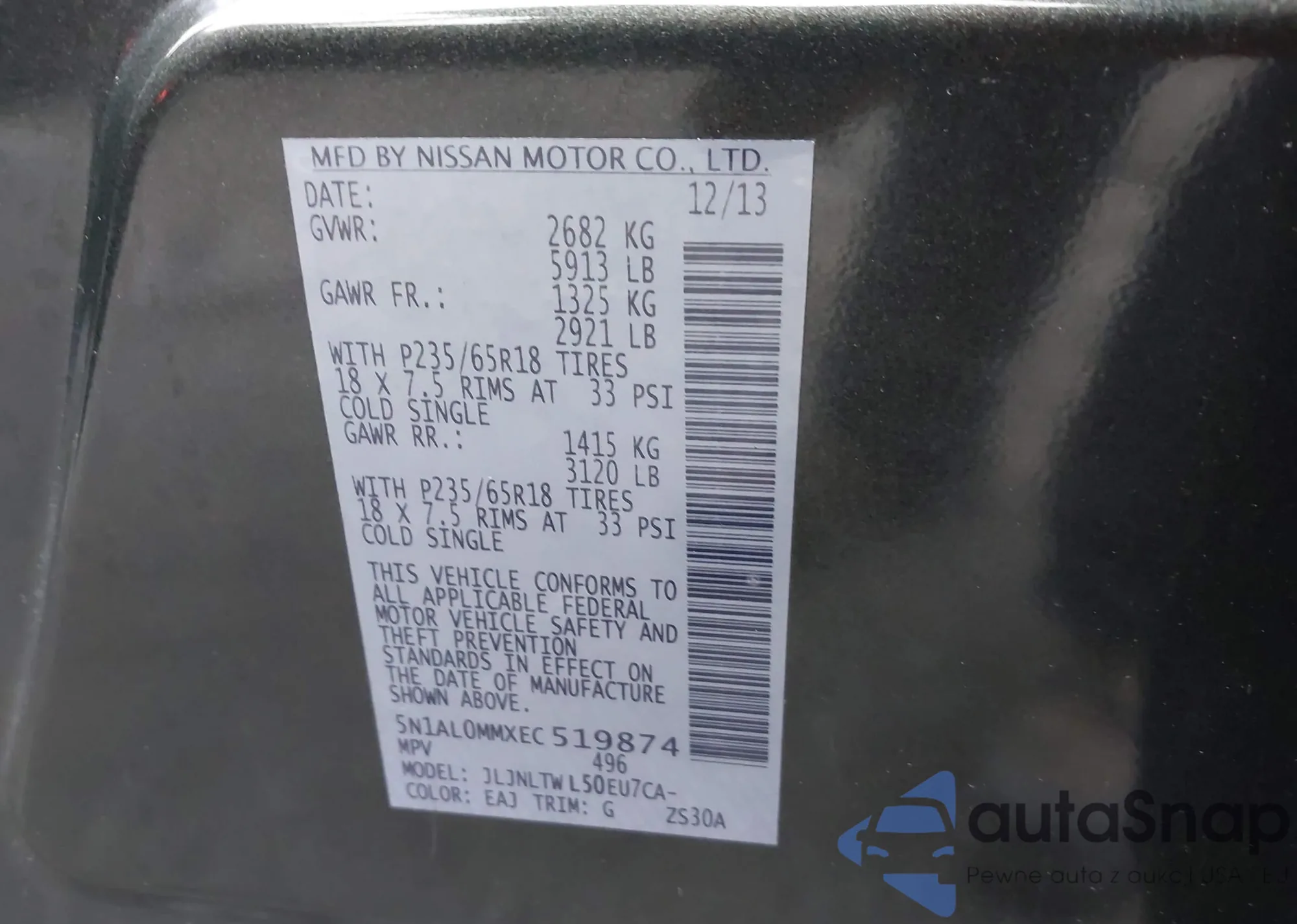 LOT: 43832672 VIN: 5N1AR2MM5DC614951