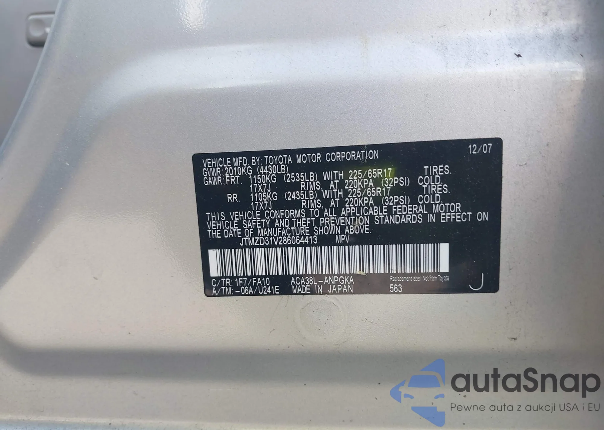 LOT: 43699231 VIN: 3FAHP08157R273804