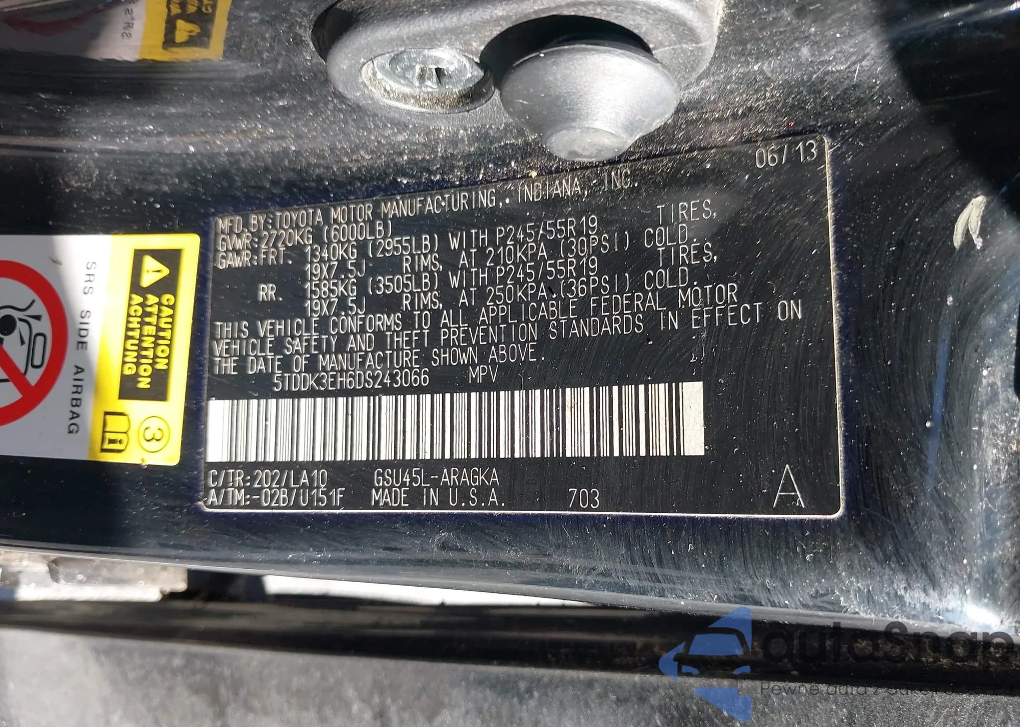 LOT: 43579278 VIN: JTEDP21A860091555