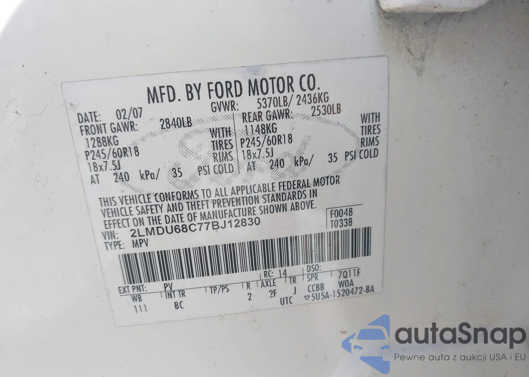 • VIN 2LMDU68C77BJ12830