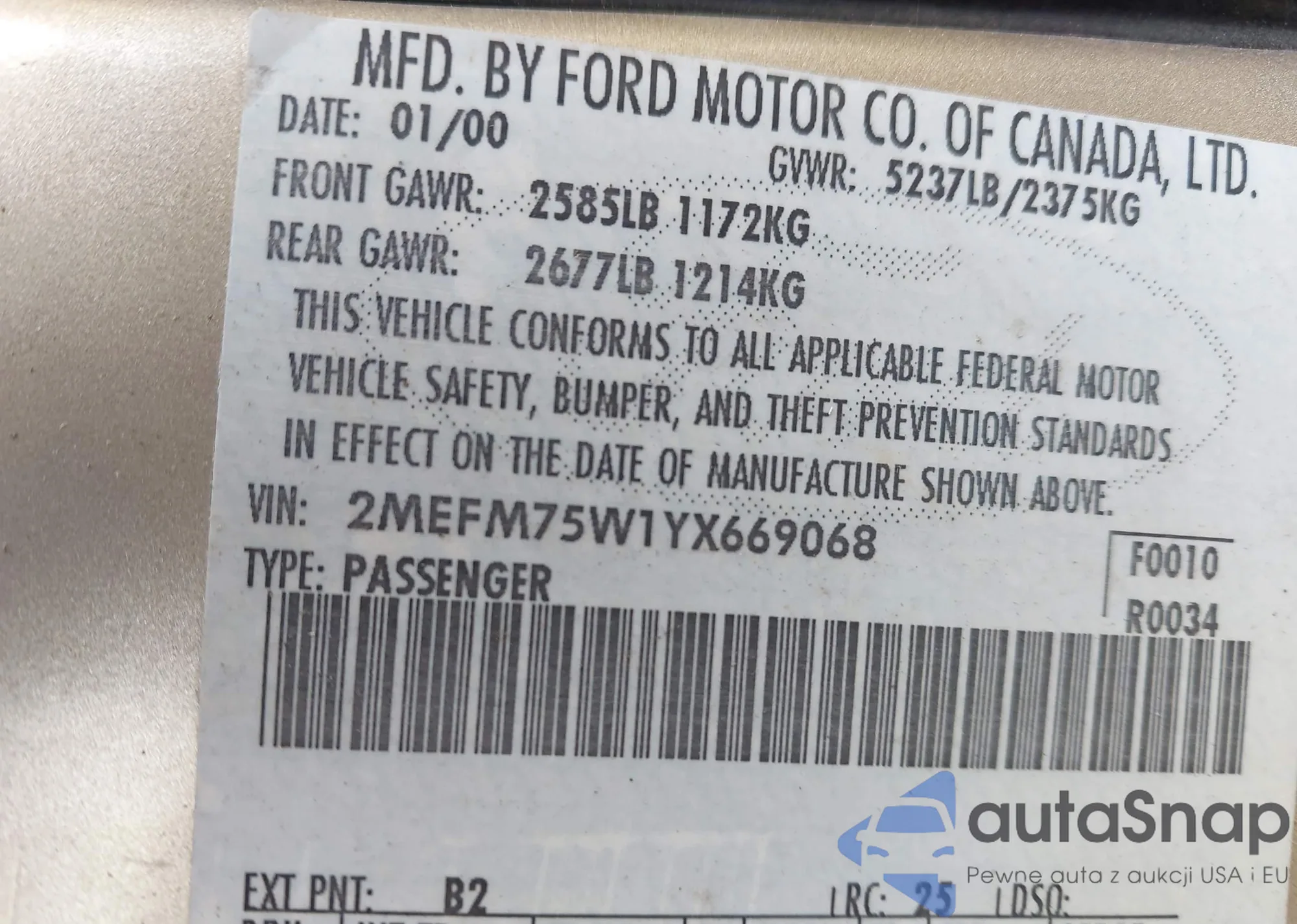 • VIN 2MEFM75W1YX669068