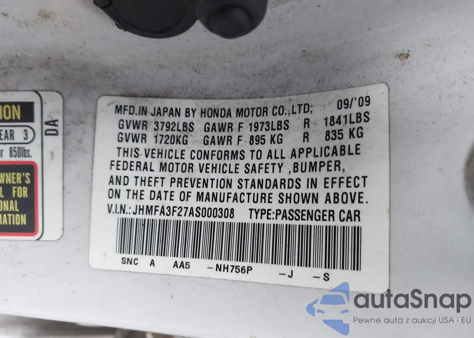 • VIN JHMFA3F27AS000308