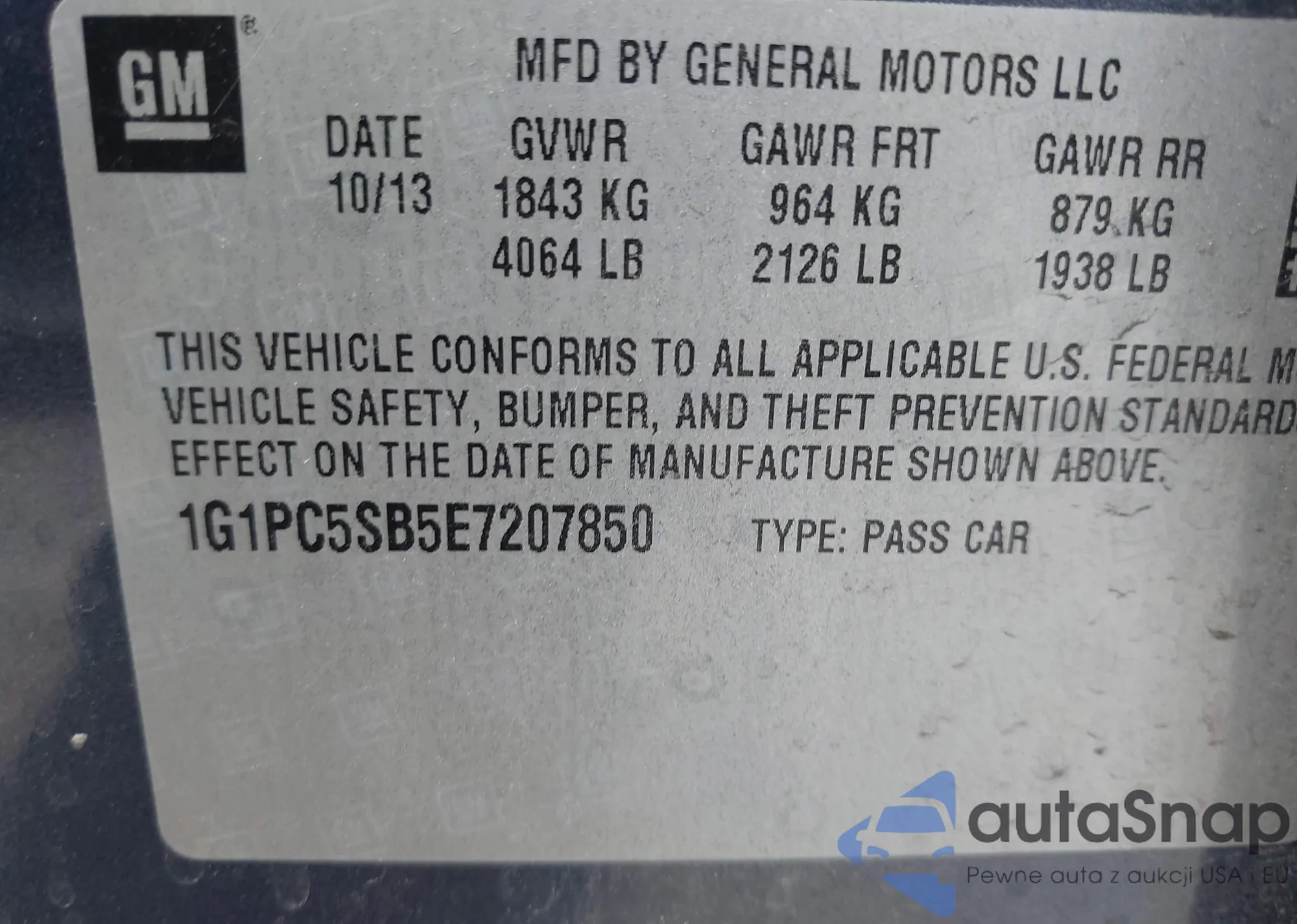 LOT: 43641891 VIN: 1G1PC5SB5E7207850