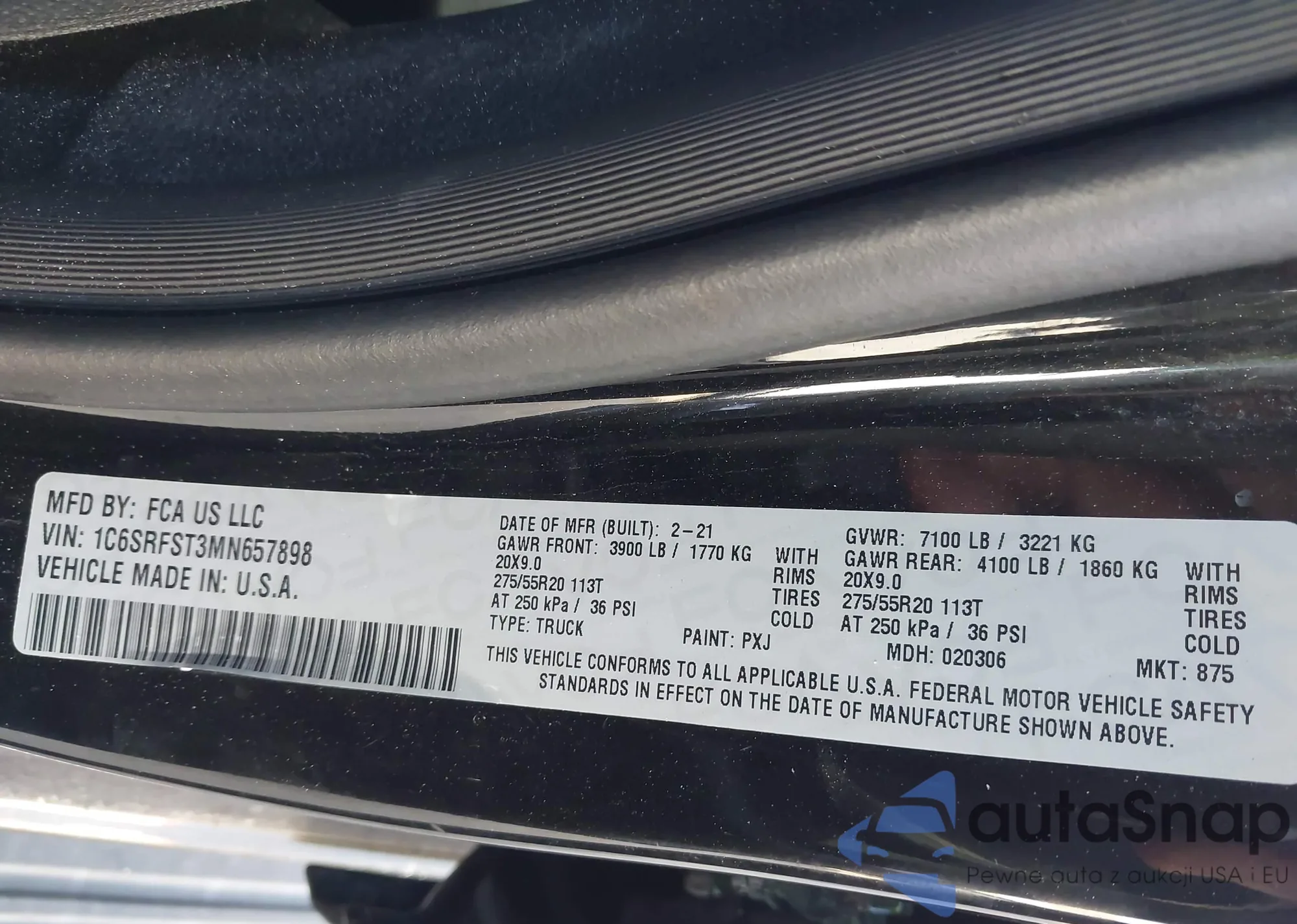 • VIN 1C6SRFST3MN657898