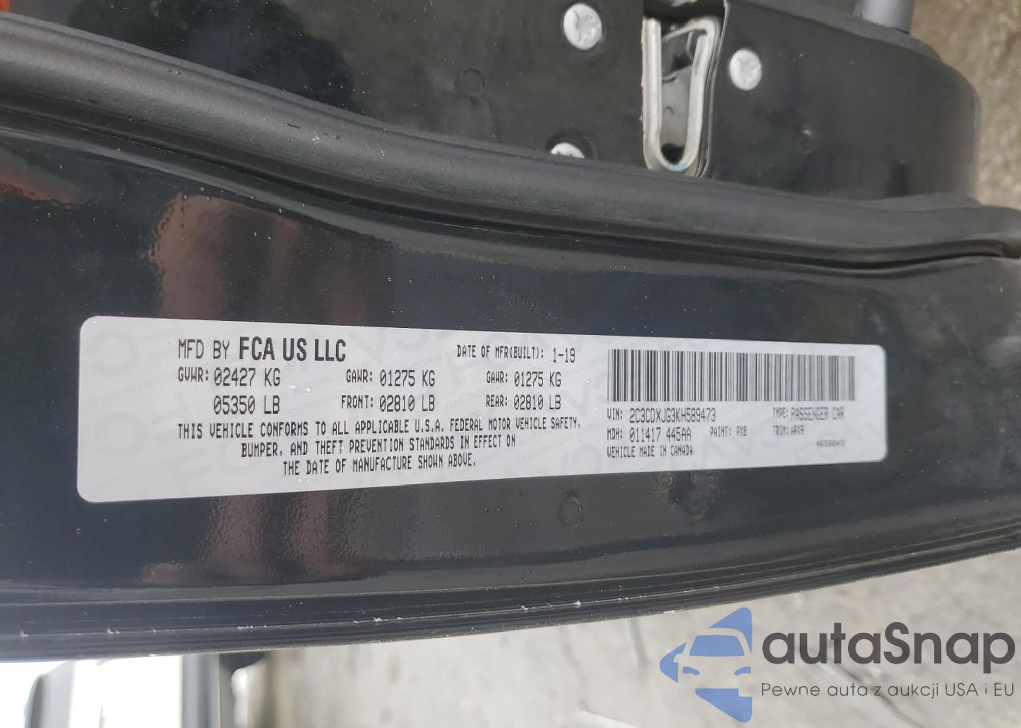 • VIN 2C3CDXJG3KH589473