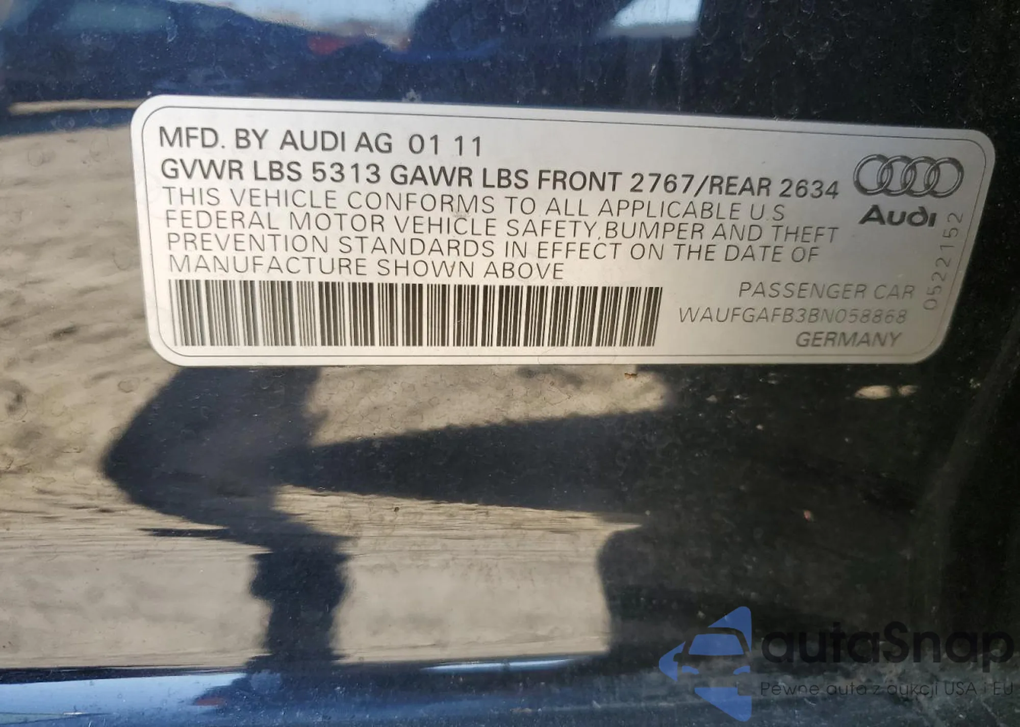 • VIN WAUFGAFB3BN058868