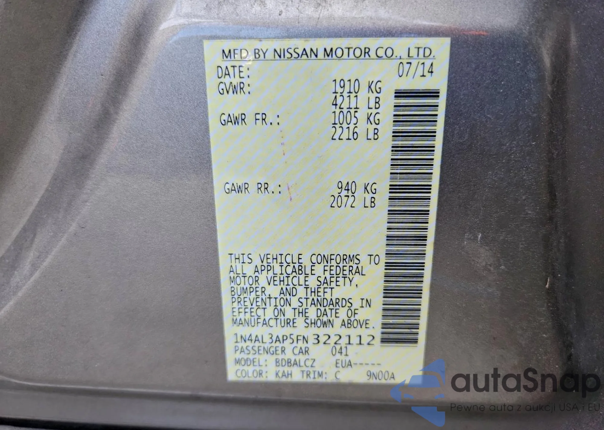 LOT: 95784085 VIN: 1N4AL3AP5FN322112