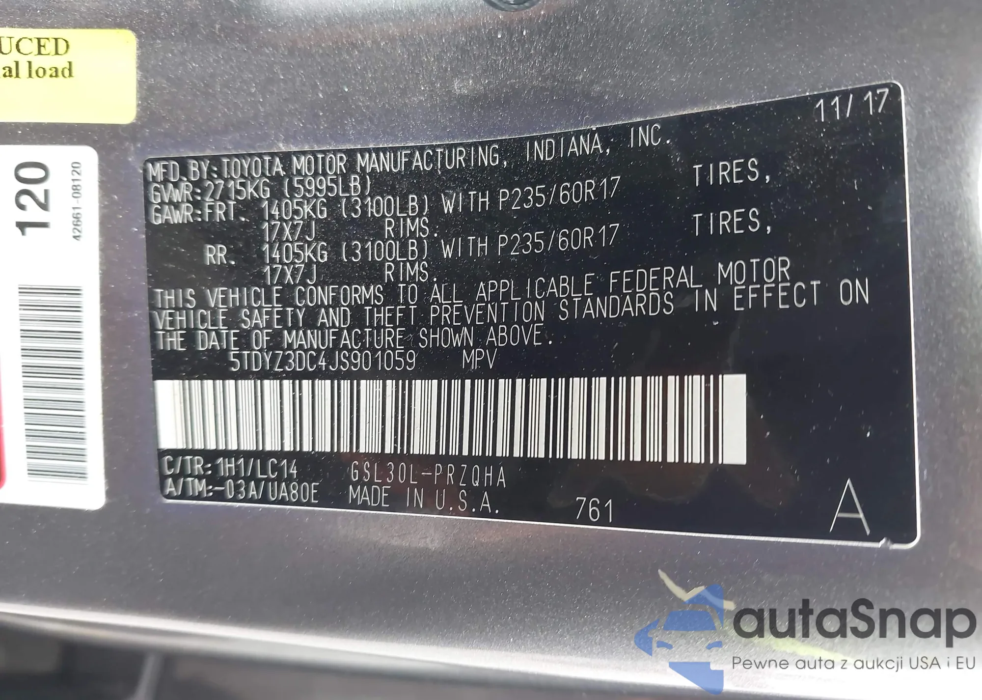 • VIN 5TDYZ3DC4JS901059