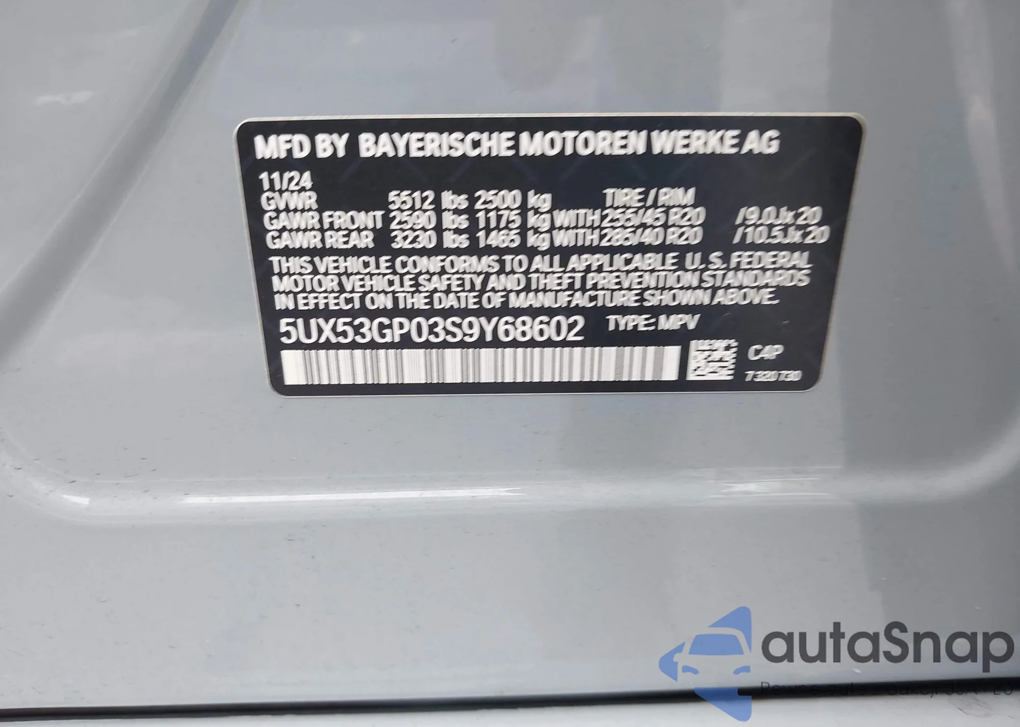 • VIN 5UX53GP03S9Y68602