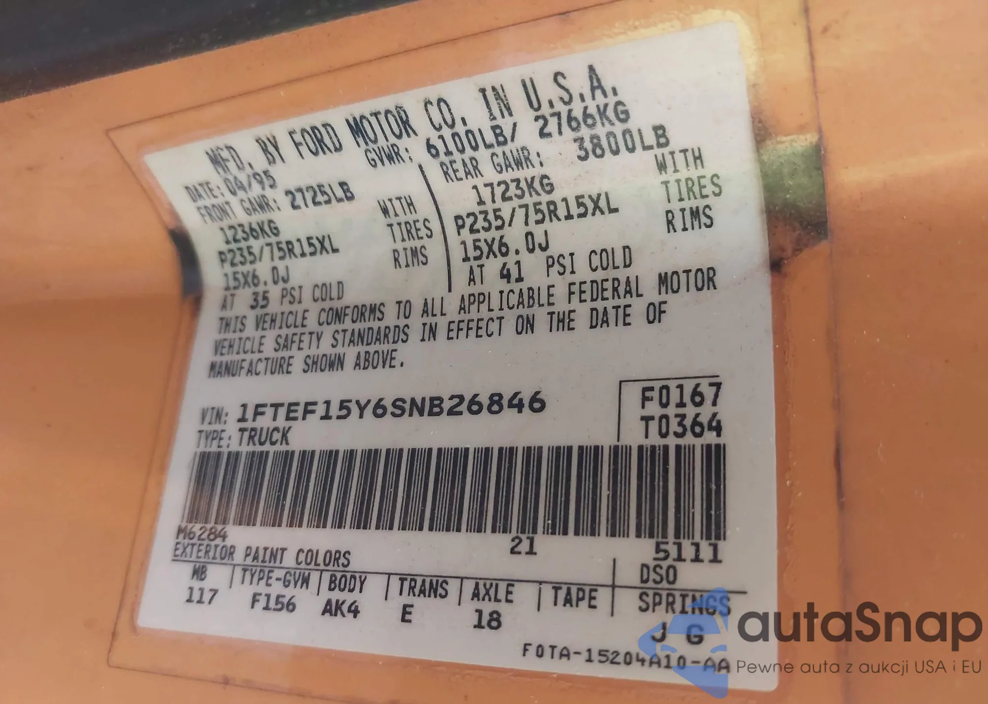 • VIN 1FTEF15Y6SNB26846