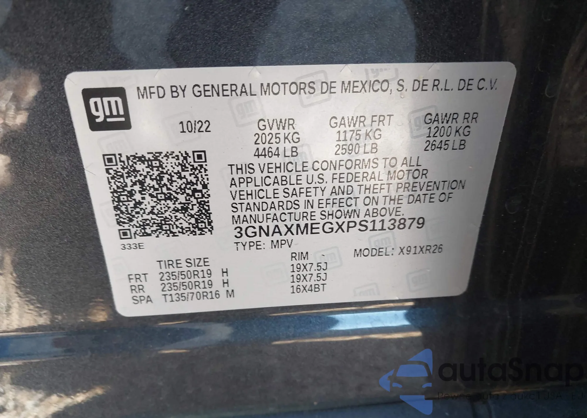 LOT: 43585150 VIN: 3GNAXMEGXPS113879