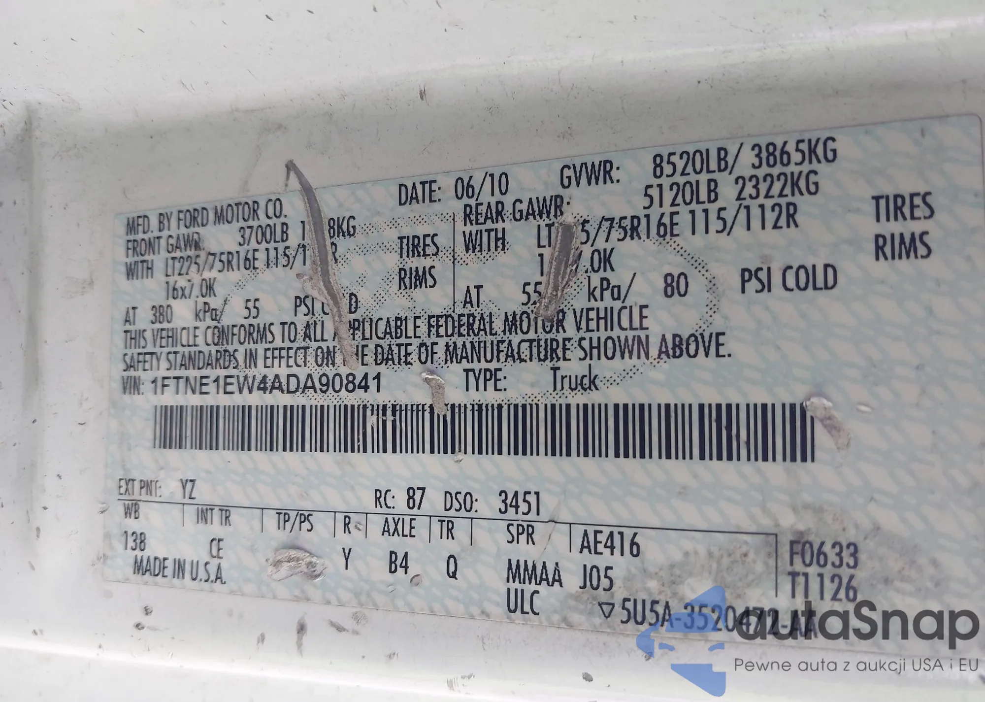 • VIN 1FTNE1EW4ADA90841