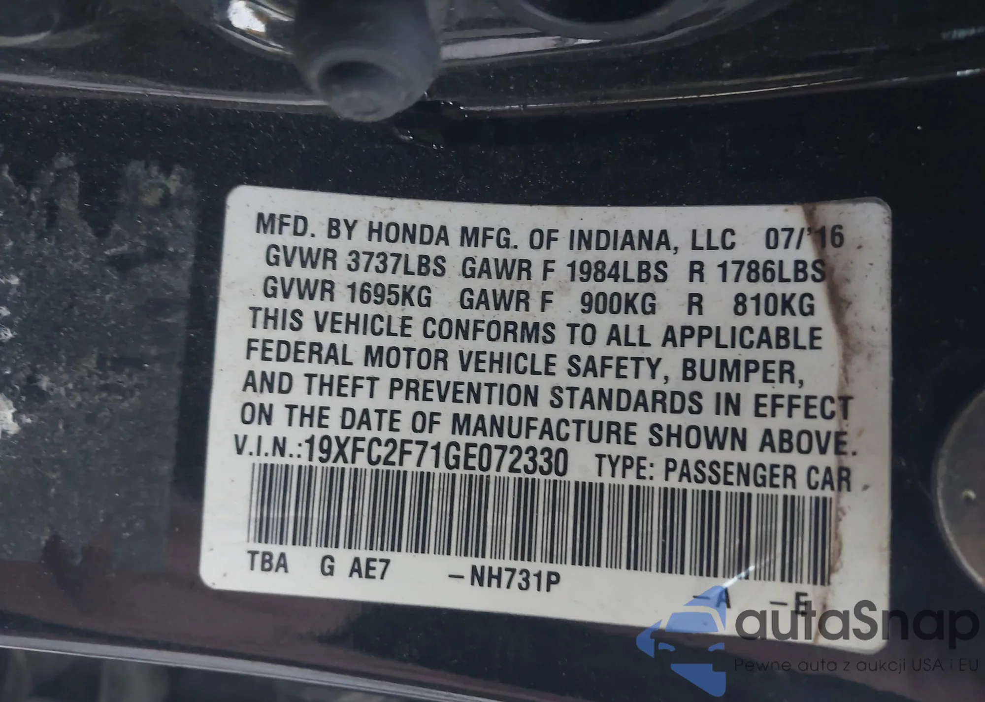 • VIN 19XFC2F71GE072330