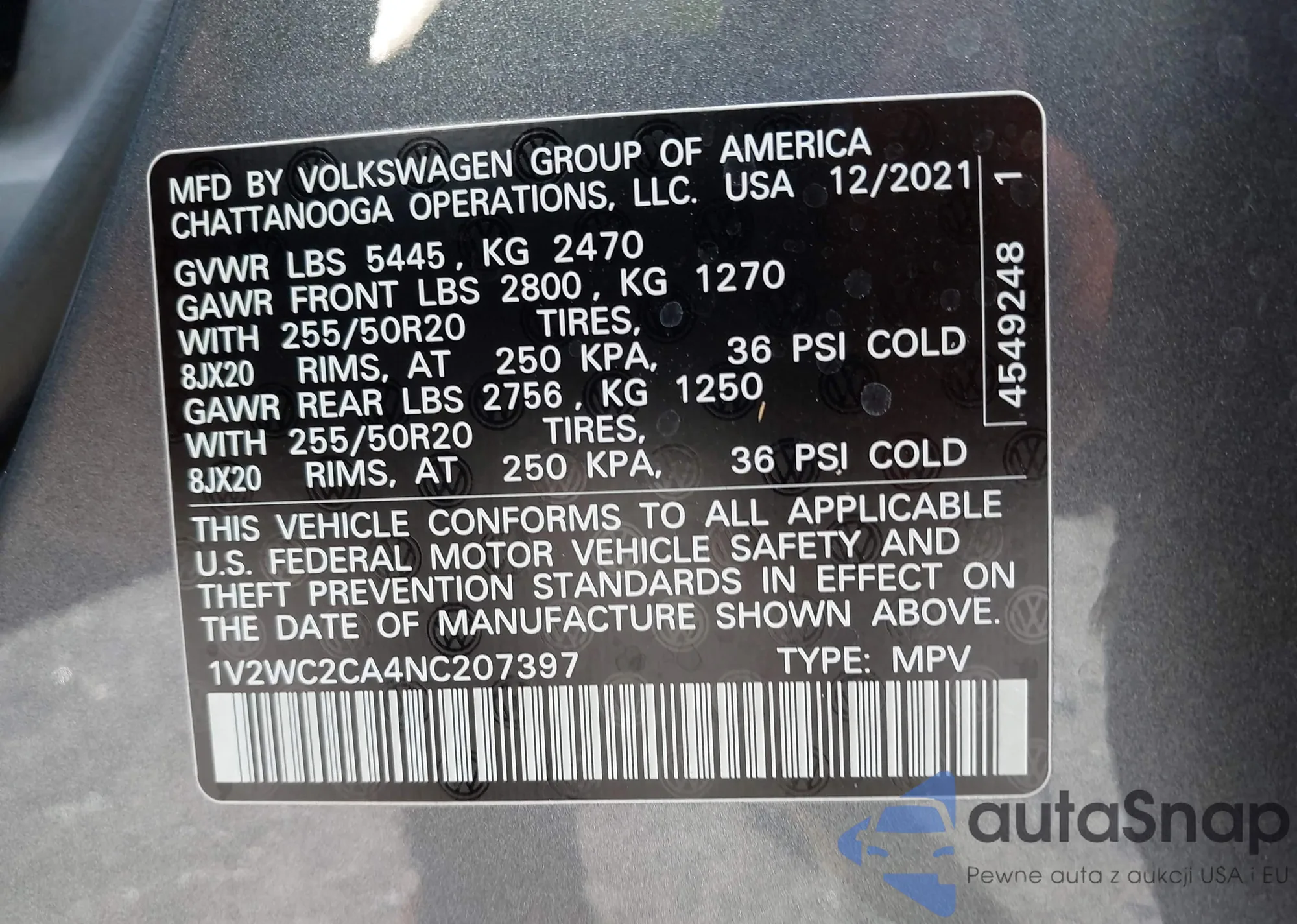 • VIN 3VW5T7AU6MM001158