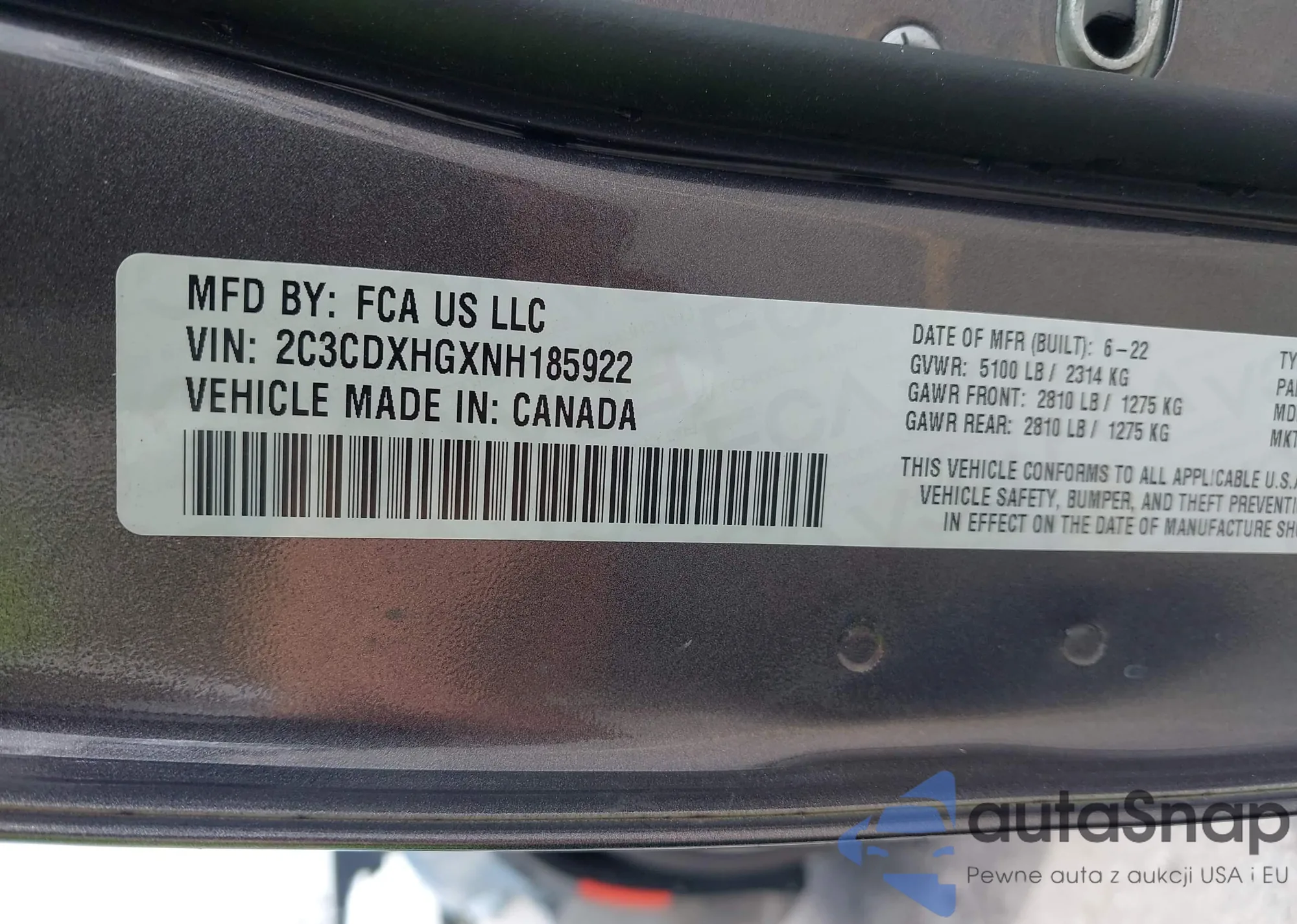 • VIN 2C3CDXHGXNH185922