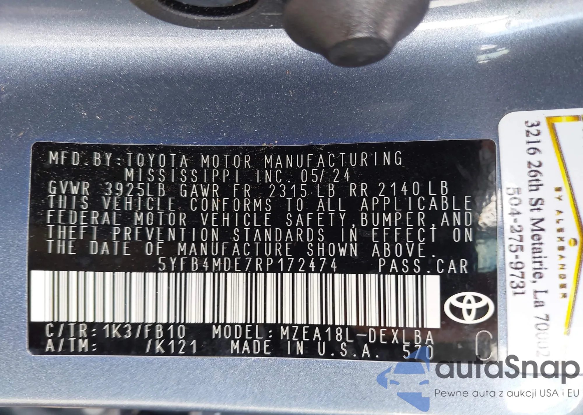 • VIN 5TDKK4CCXAS297664