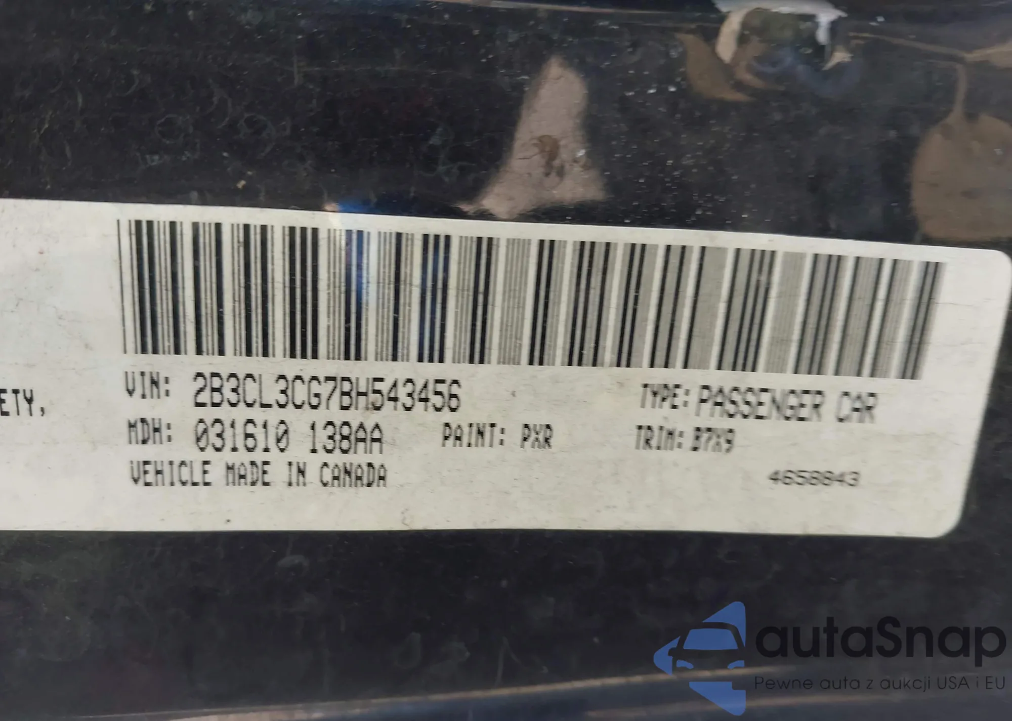 • VIN 2B3CL3CG7BH543456