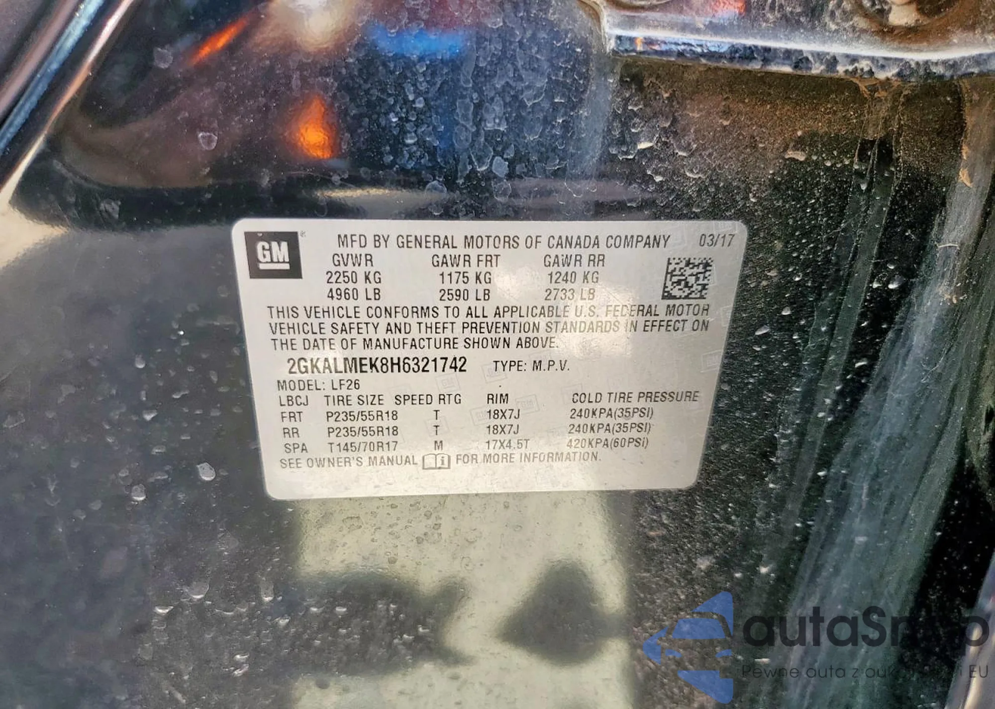 LOT: 80844785 VIN: 2GKALMEK8H6321742