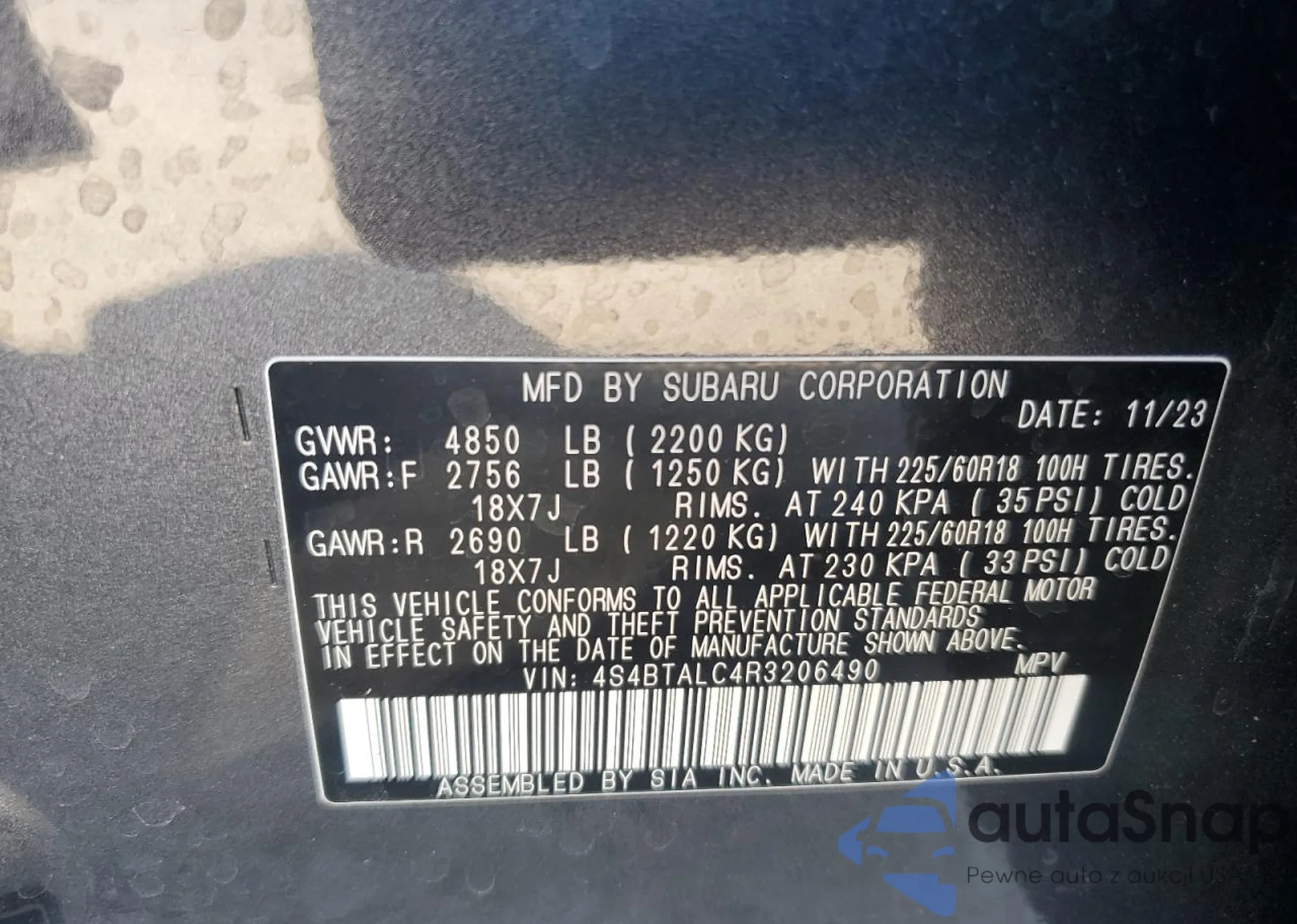 • VIN 3KPF44ACXPE566876