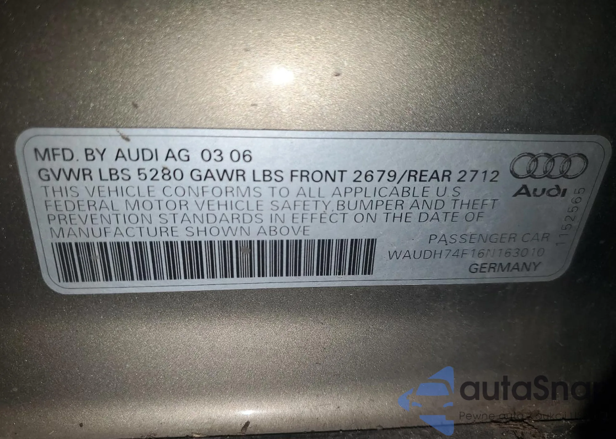 LOT: 85190155 VIN: WAUDH74F16N163010