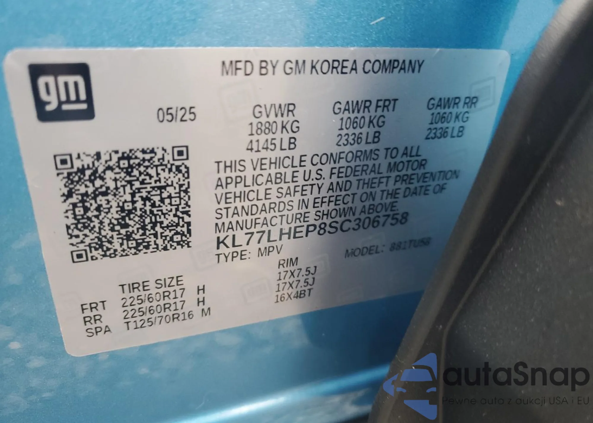 • VIN KL77LHEP8SC306758