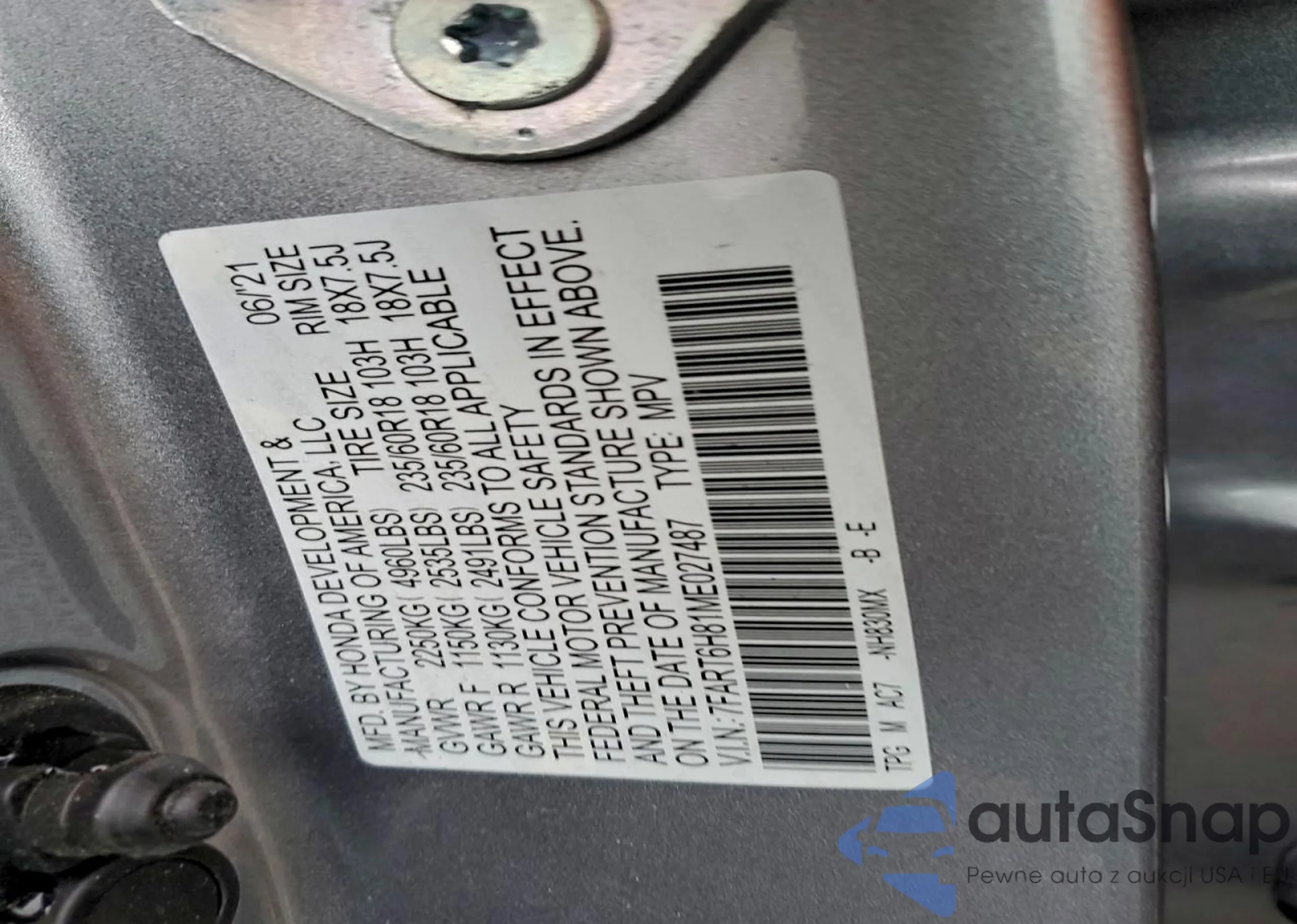 • VIN 7FART6H81ME027487