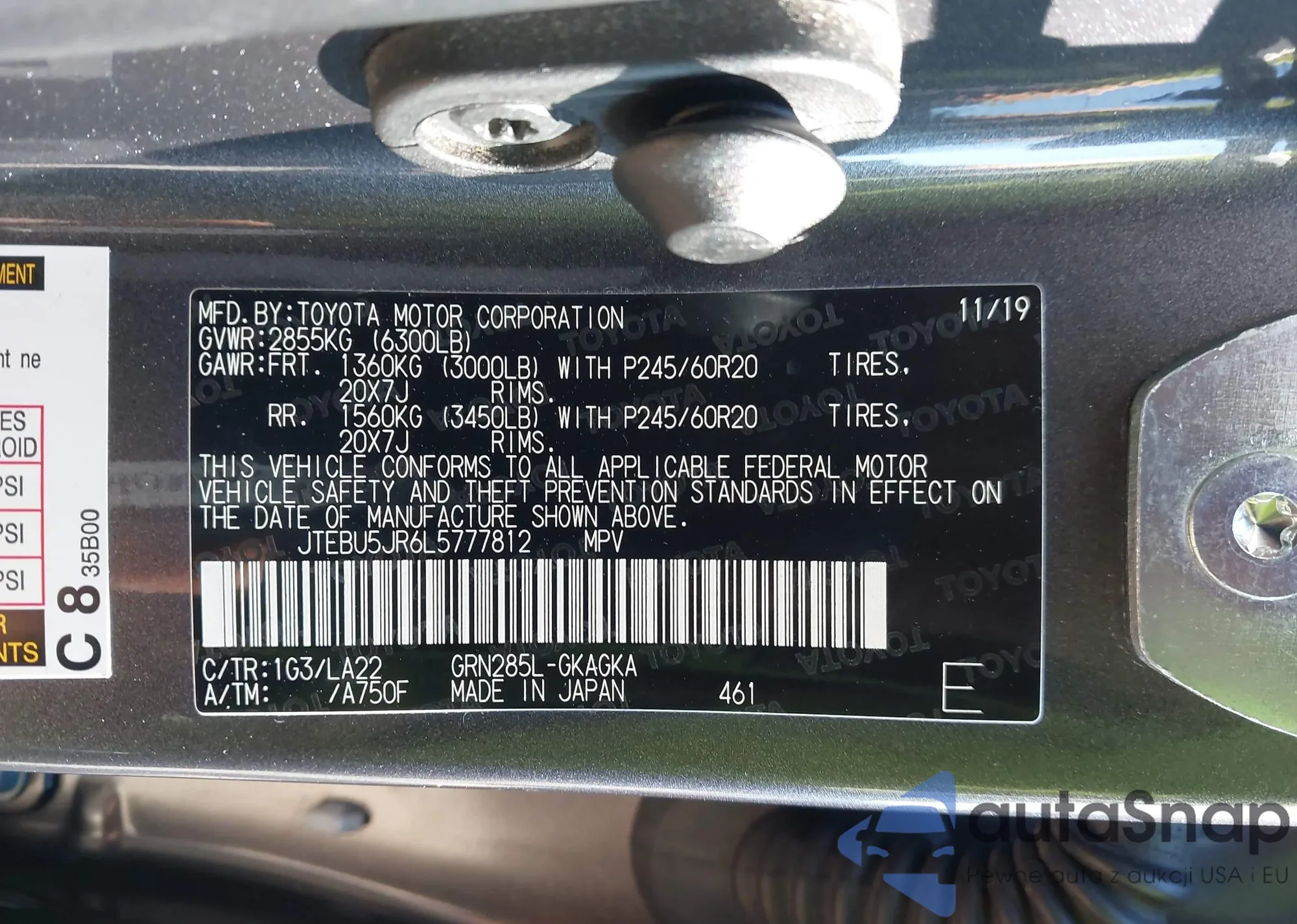 LOT: 43489448 VIN: JTEBU5JR6L5777812