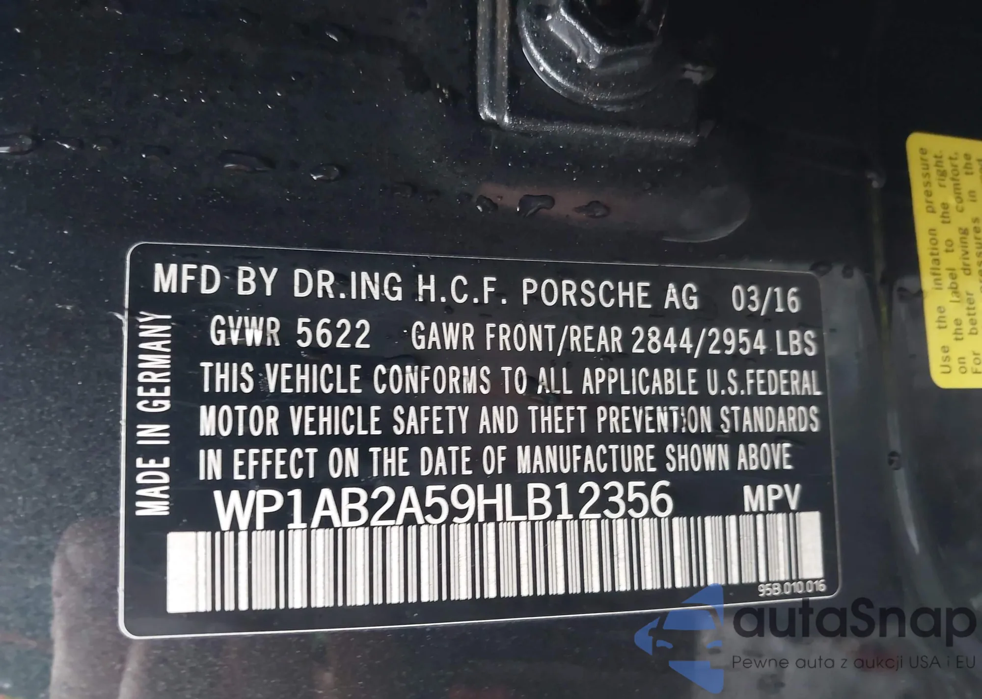 LOT: 43601499 VIN: WP1AB2A59HLB12356