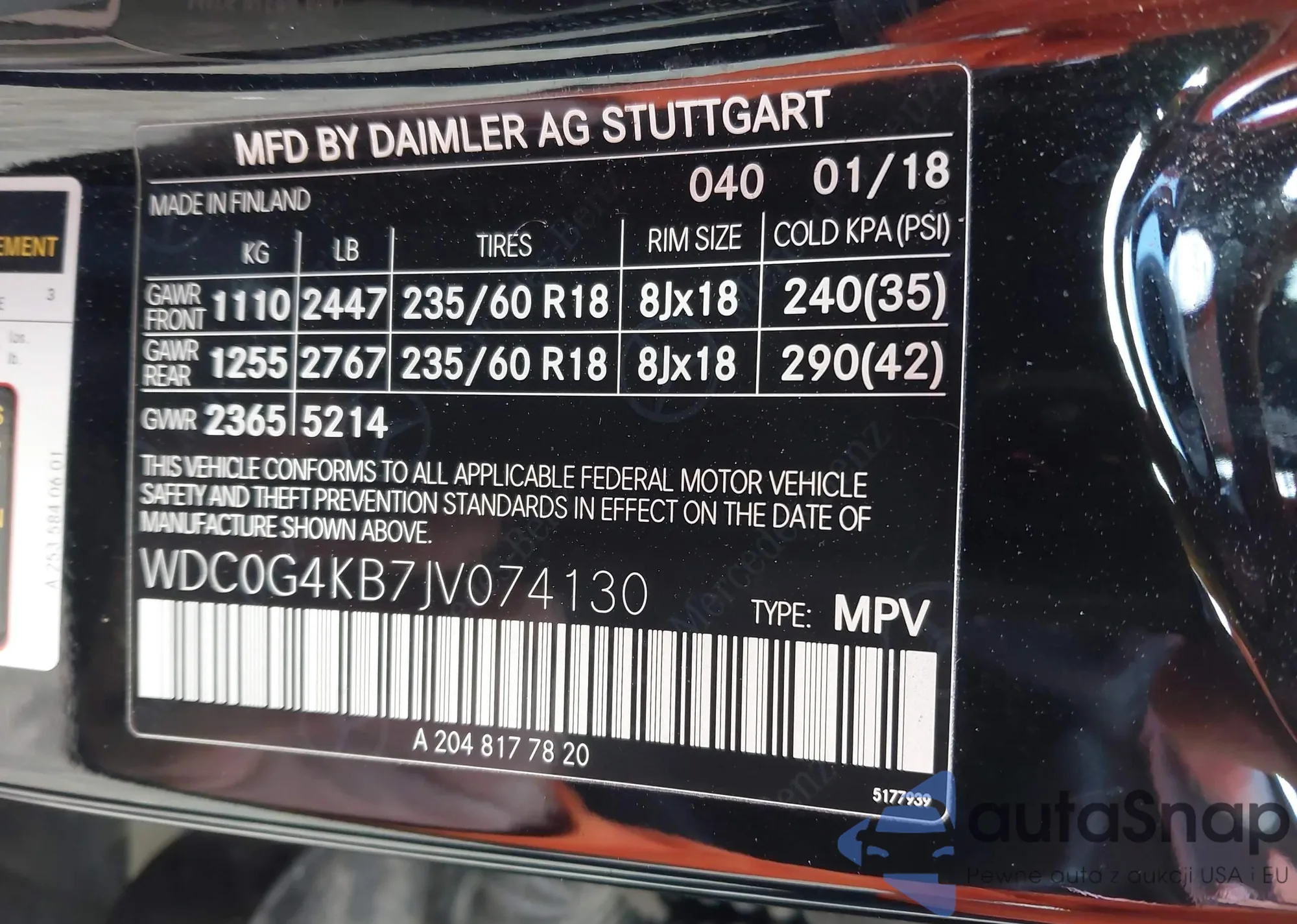 • VIN WDC0G4KB7JV074130