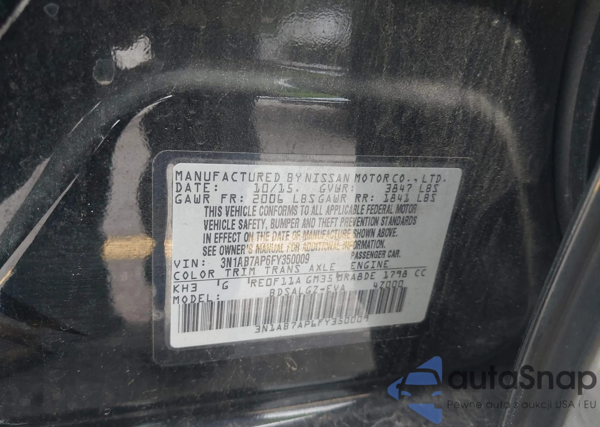 • VIN 3N1AB7AP6FY350009