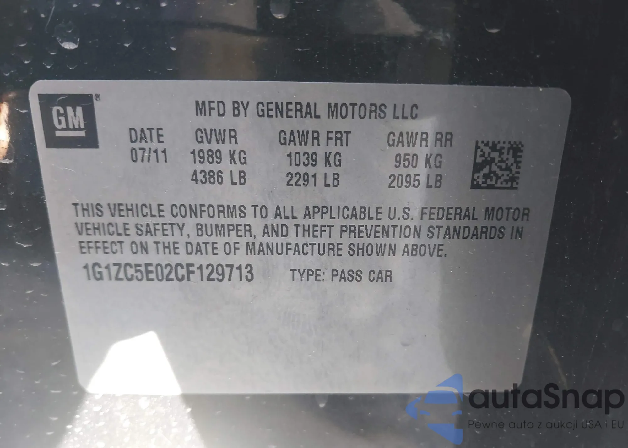 • VIN 1G1ZC5E02CF129713