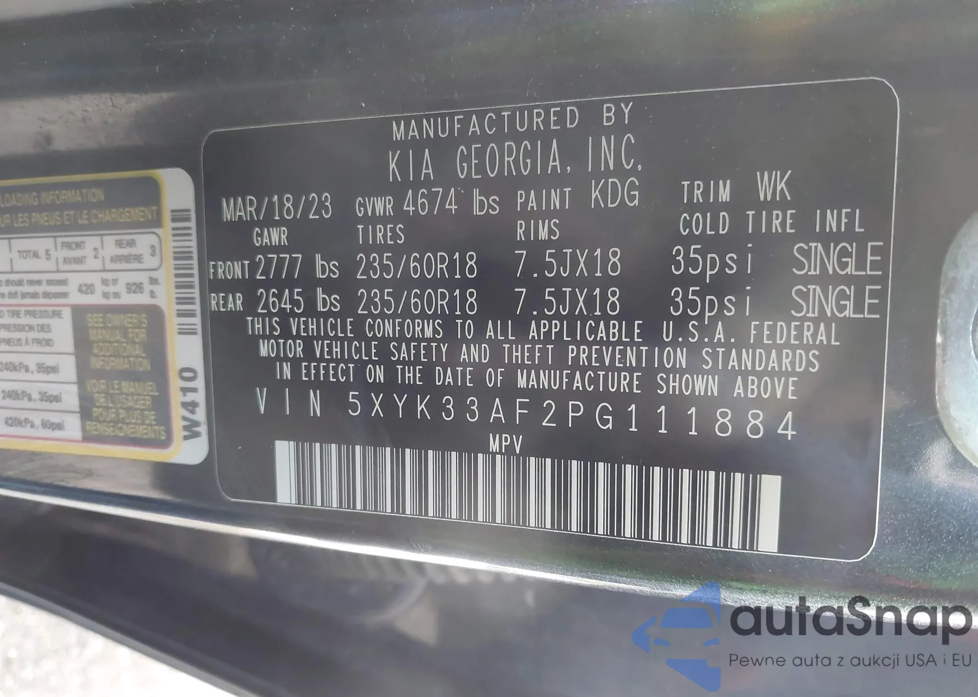 LOT: 43257778 VIN: 5XYK33AF2PG111884