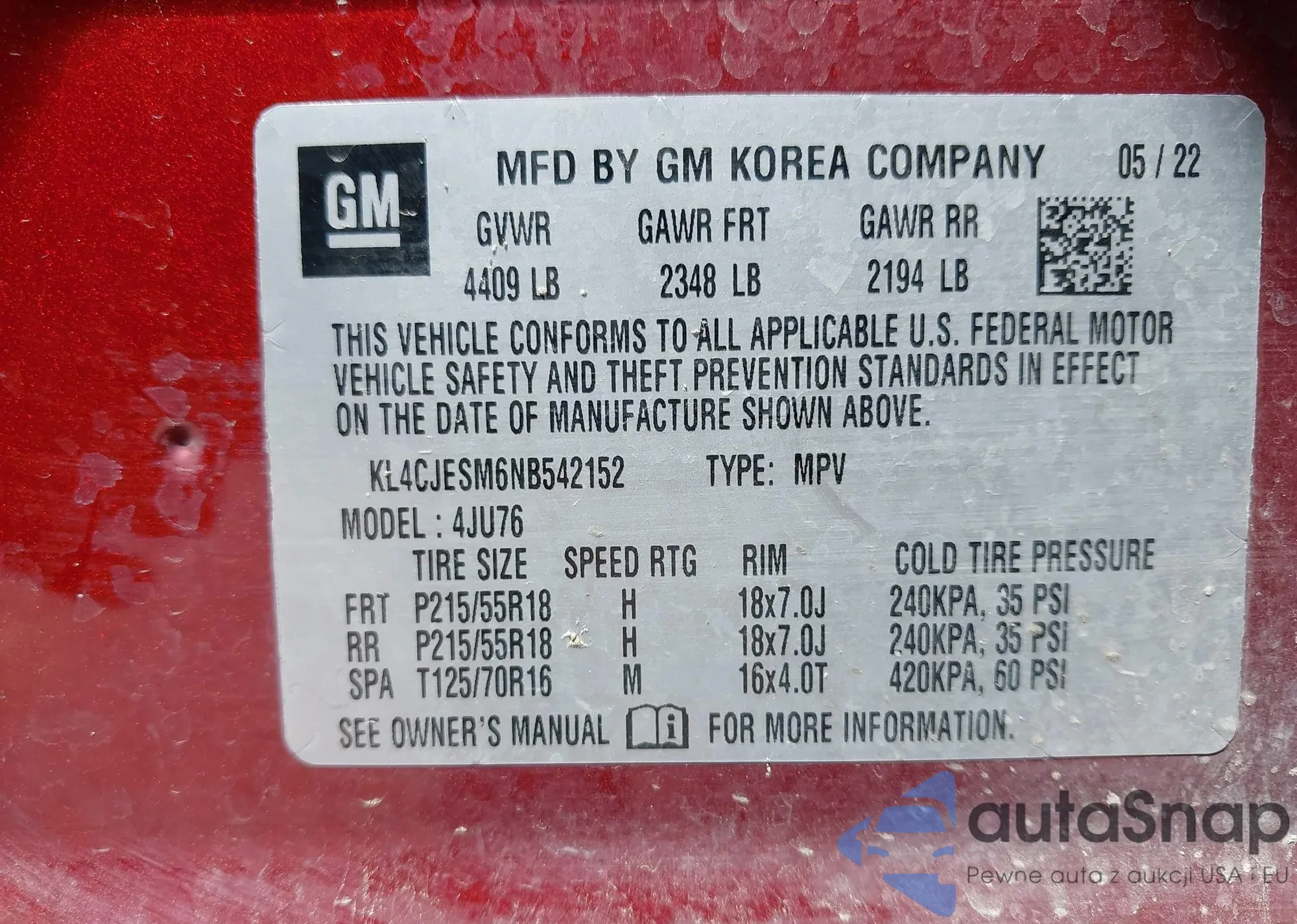 • VIN KNDCR3LEXP5047254