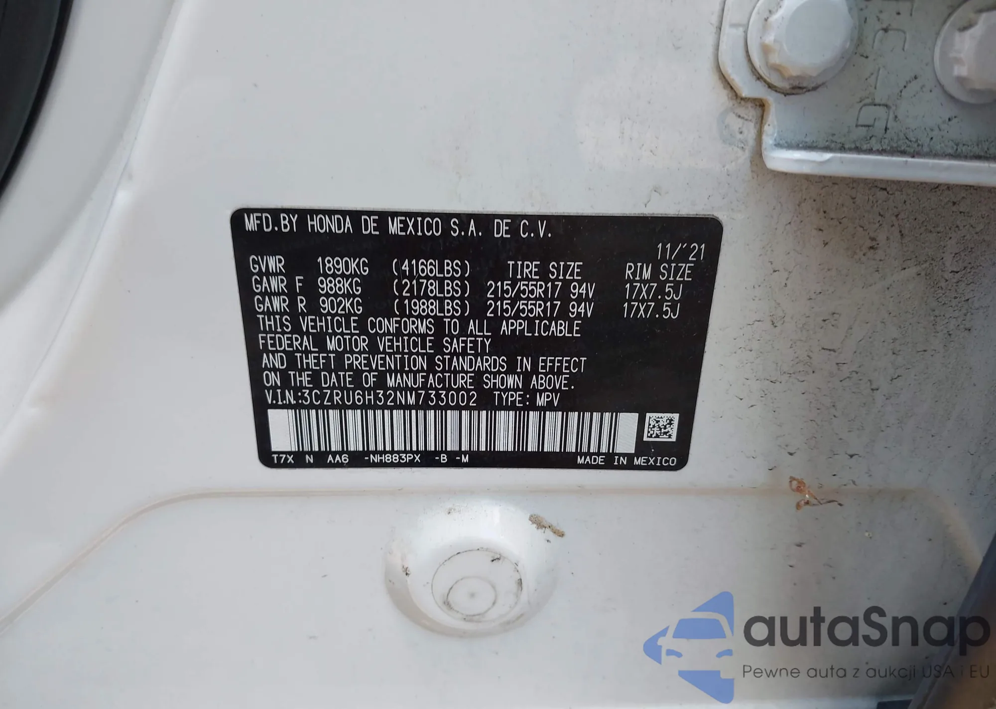 • VIN 2HKRS4H28PH422965