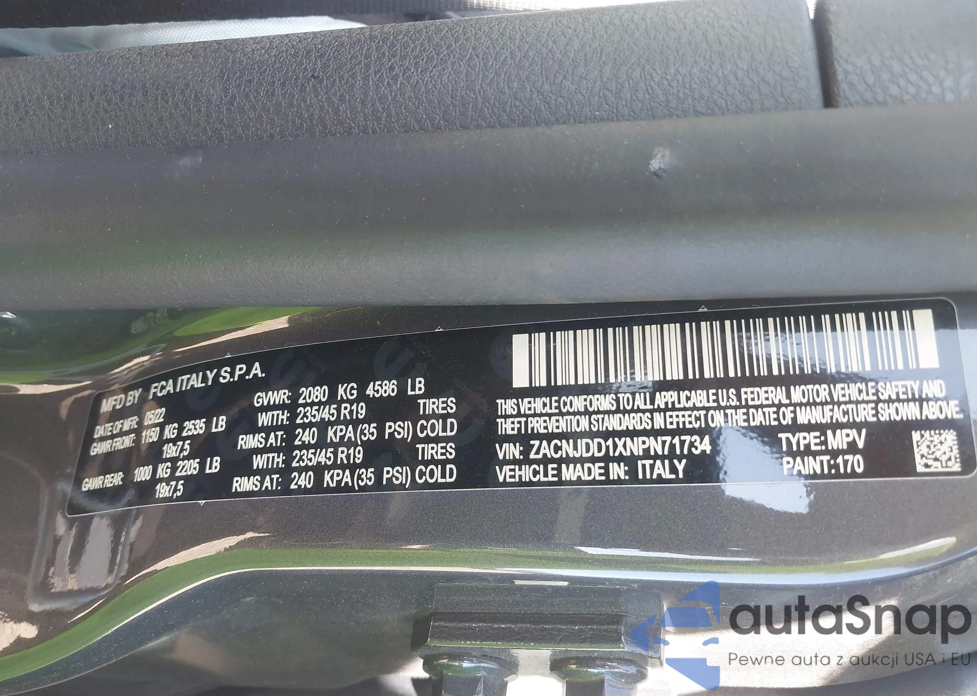 • VIN ZACNJDD1XNPN71734