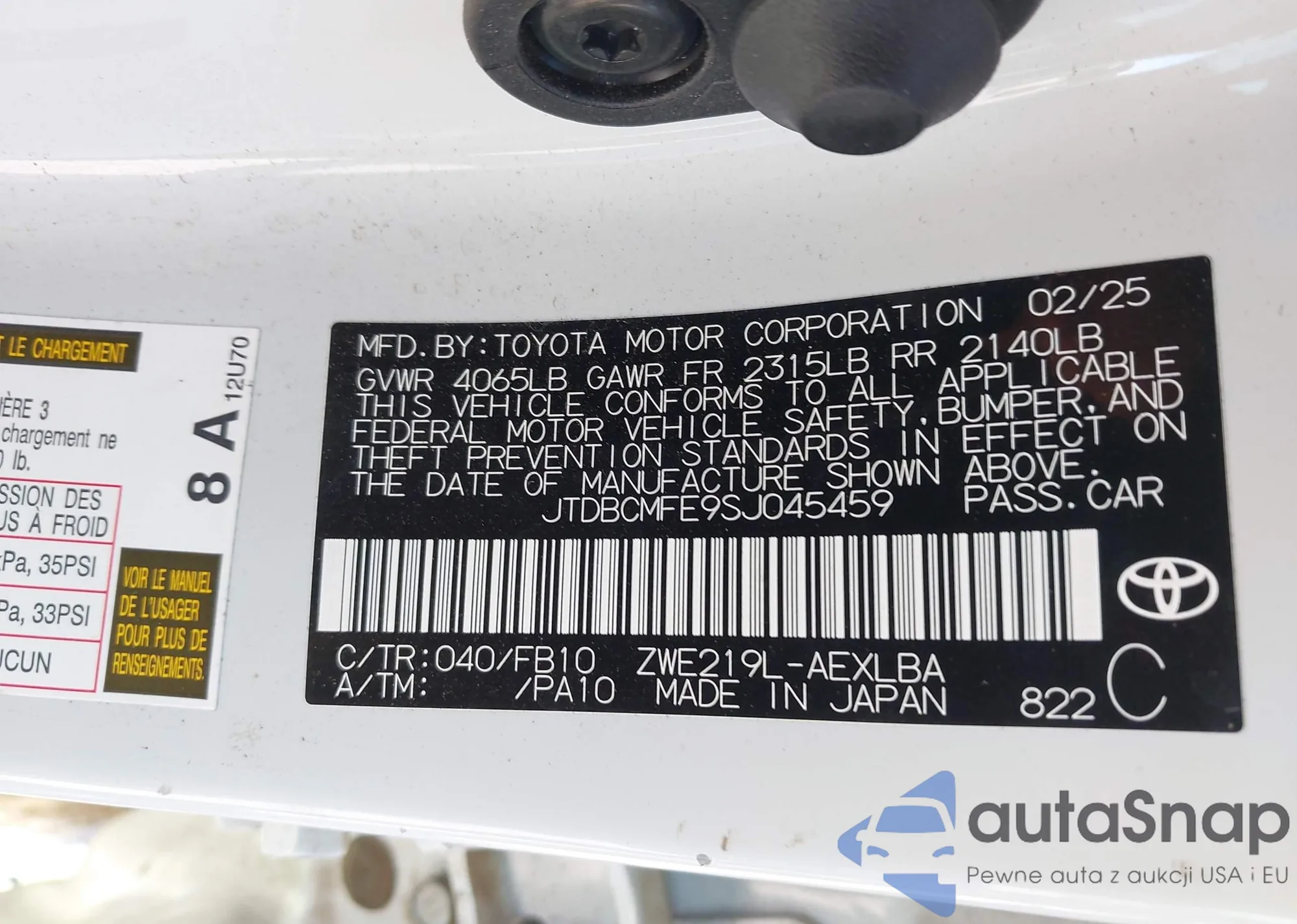 LOT: 43405486 VIN: 1N4BL4FW3LN322387