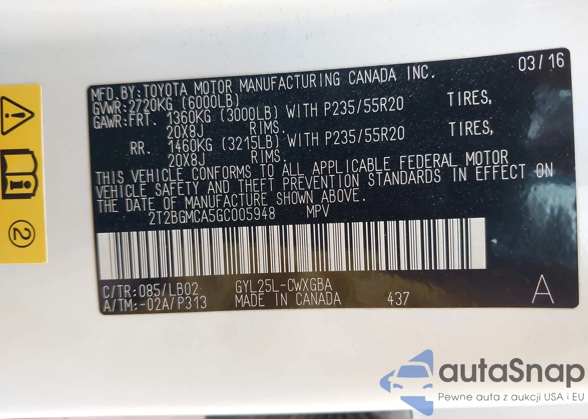 • VIN 2T2BGMCA5GC005948