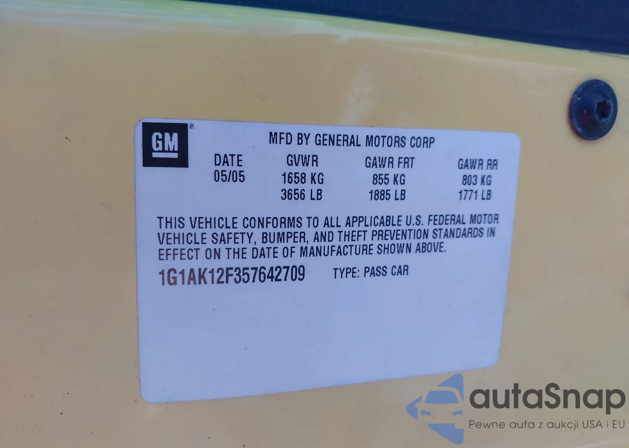 • VIN 1G1AK12F357642709