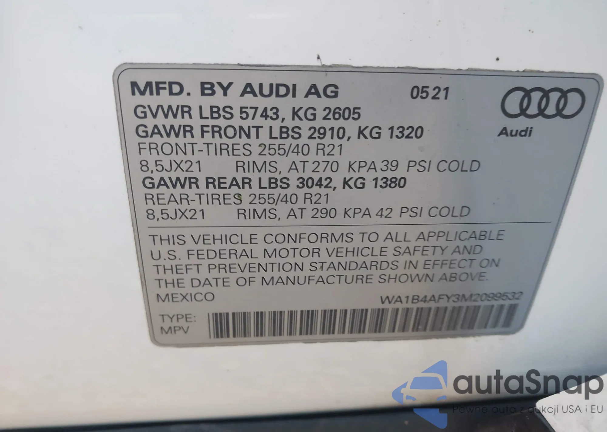 • VIN WA1B4AFY3M2099532