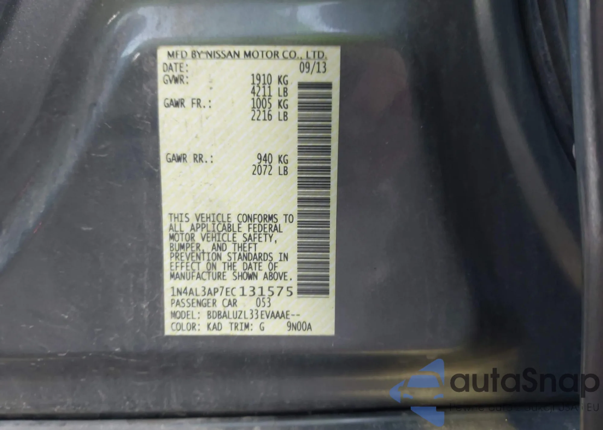 • VIN 1N4AL3AP7EC131575