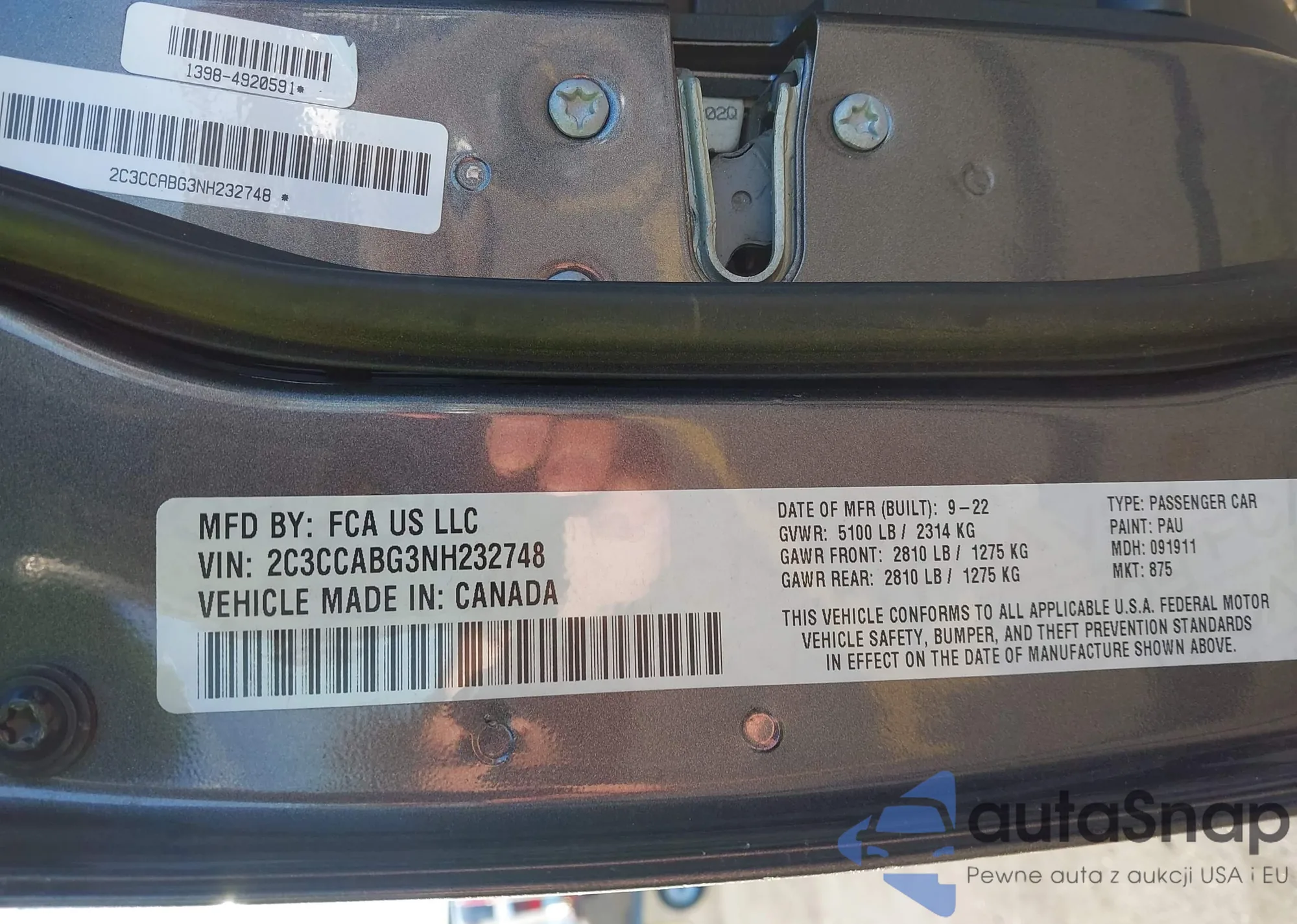 LOT: 43694492 VIN: 2C3CCAEG6JH159588