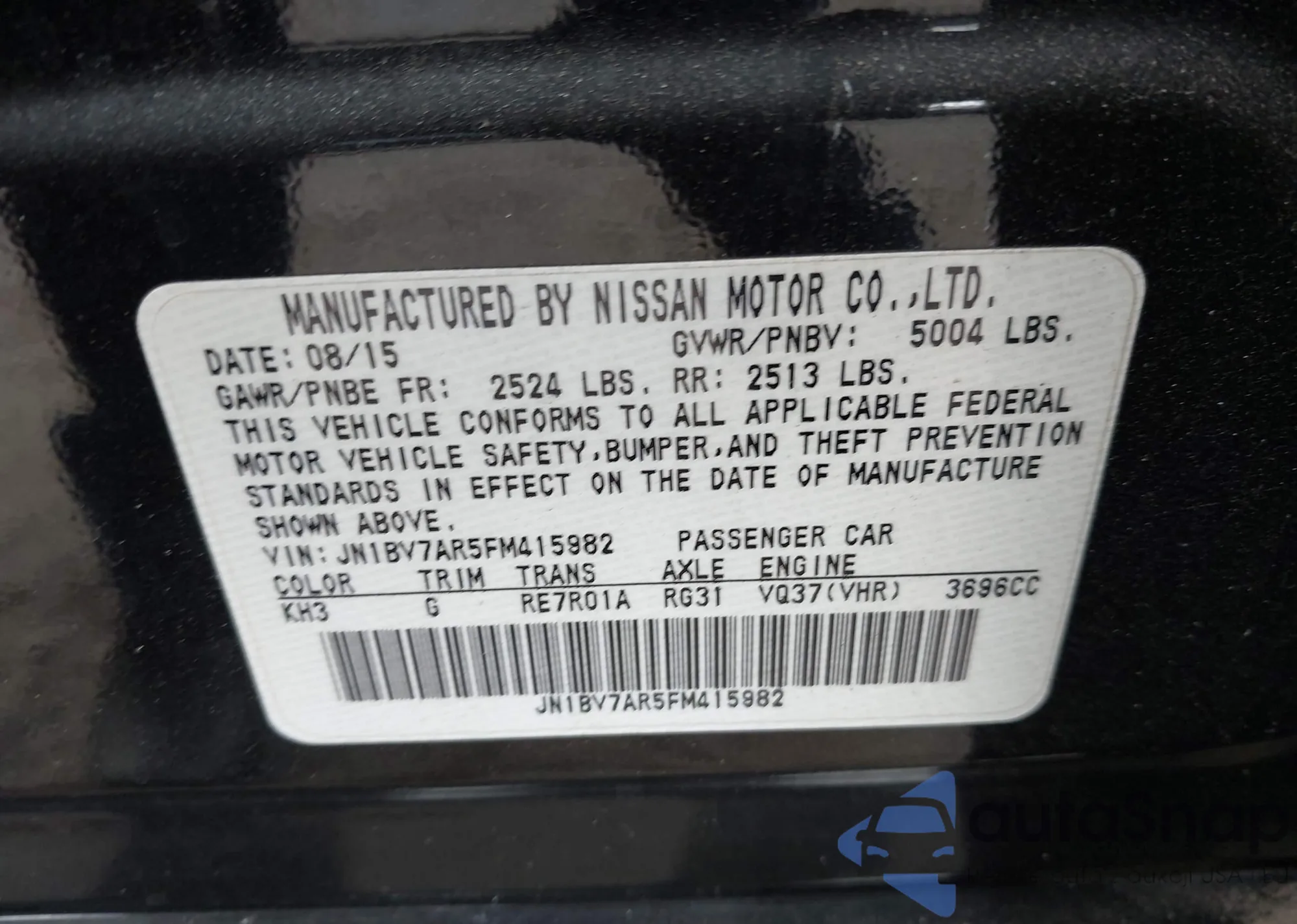 LOT: 43650285 VIN: JN1BV7AR5FM415982