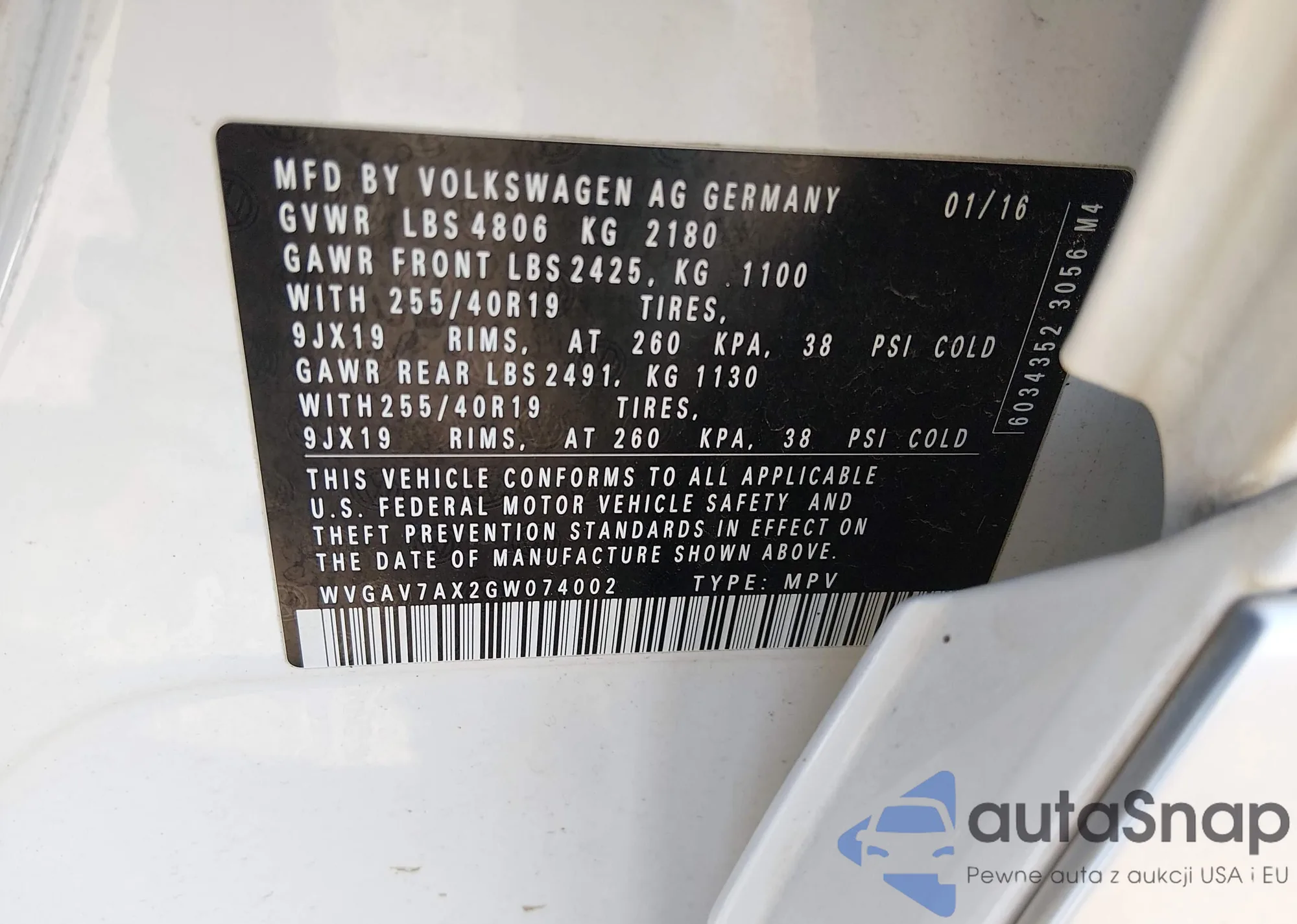 • VIN WVGAV7AX2GW074002