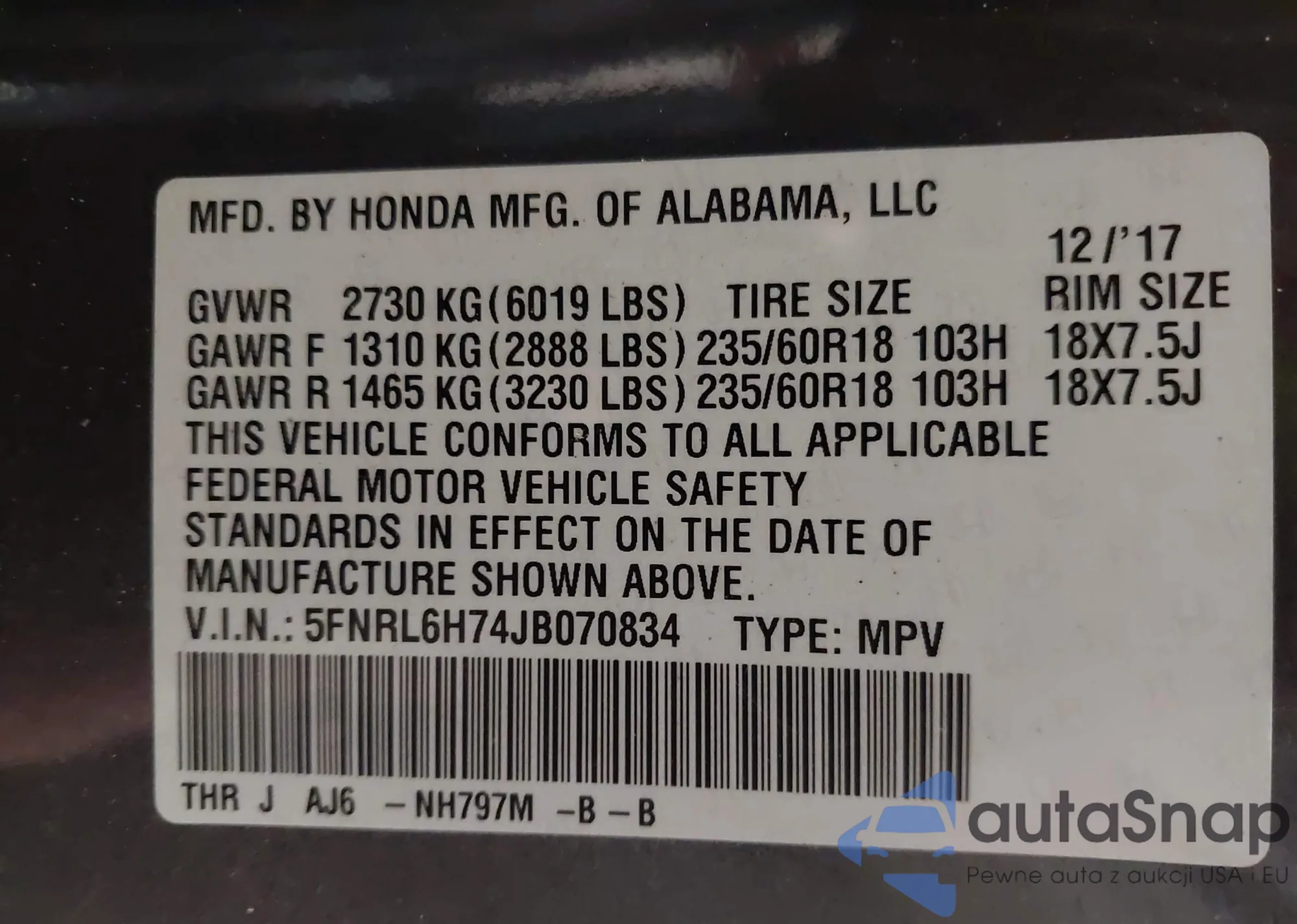 • VIN 2HKRM4H54GH606031