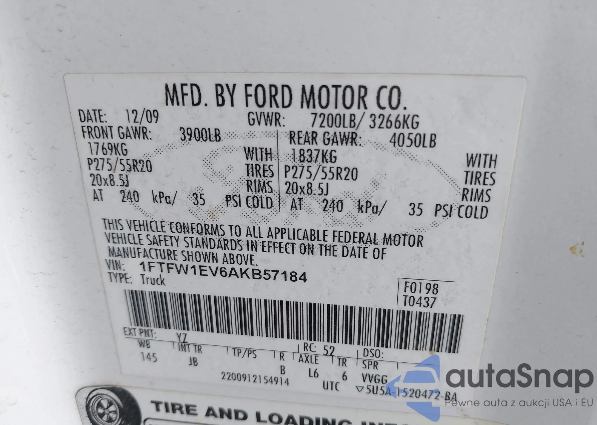 • VIN 1FTFW1EV6AKB57184