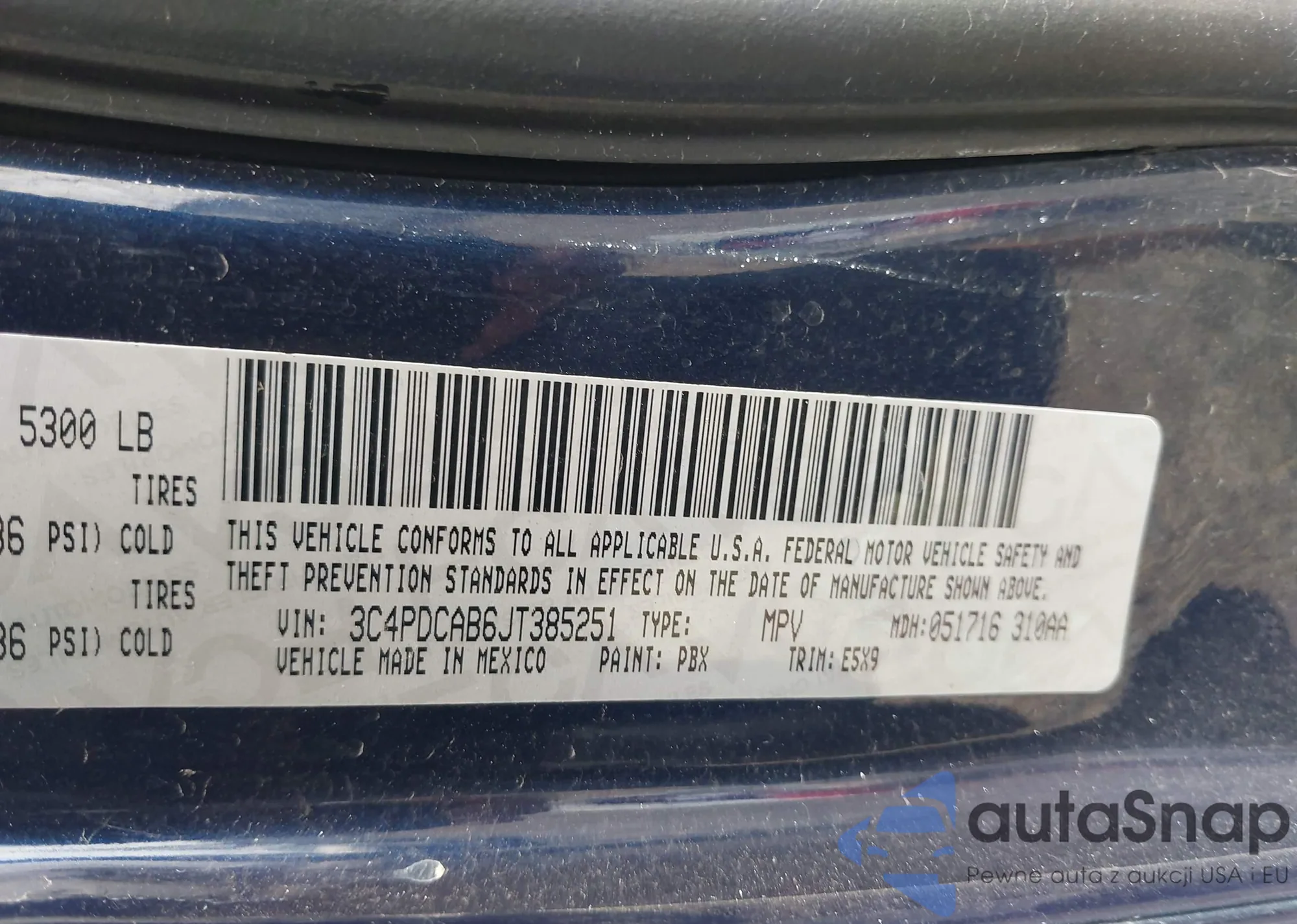 • VIN 3C4PDCAB6JT385251