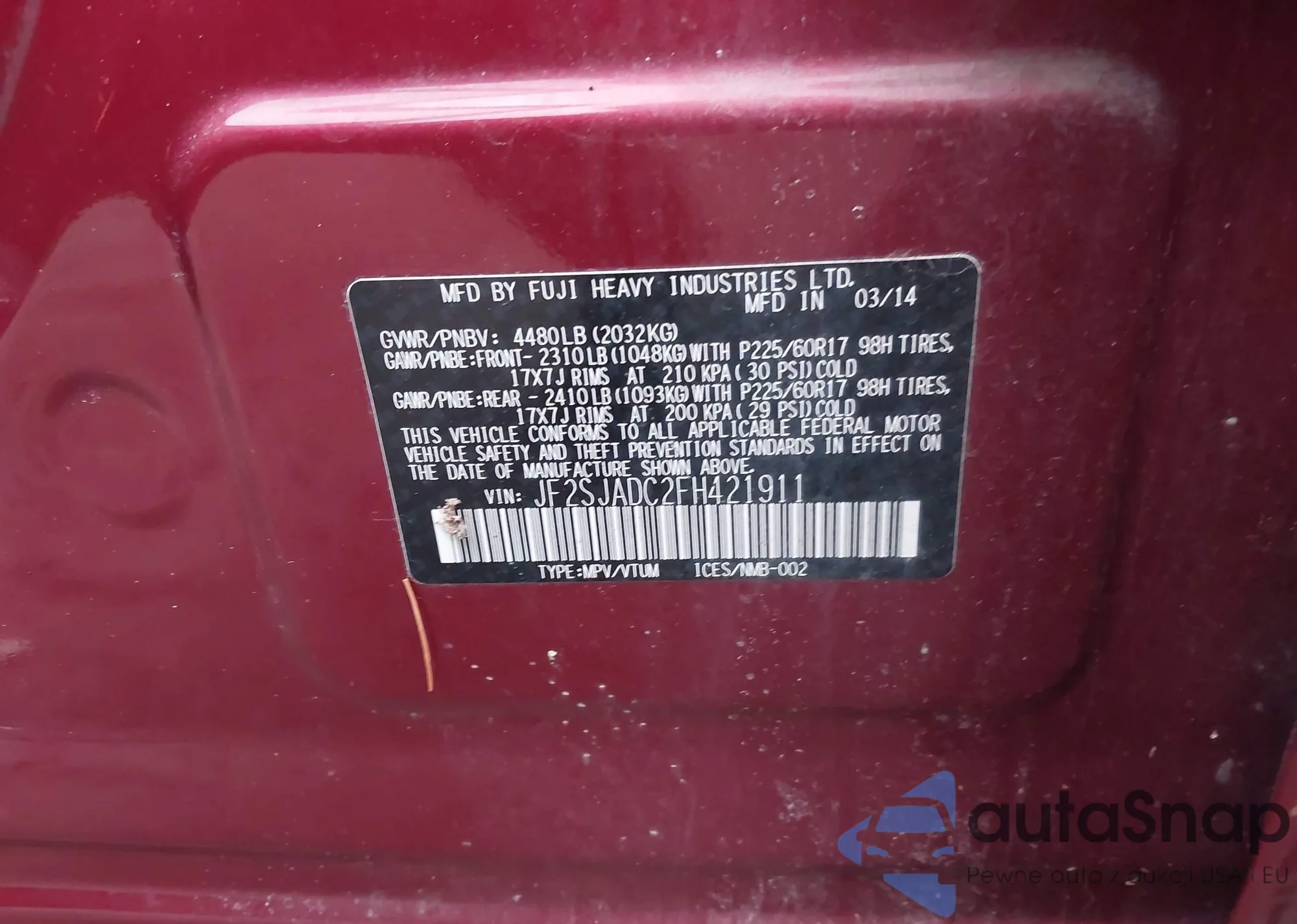 • VIN JF2SJADC2FH421911