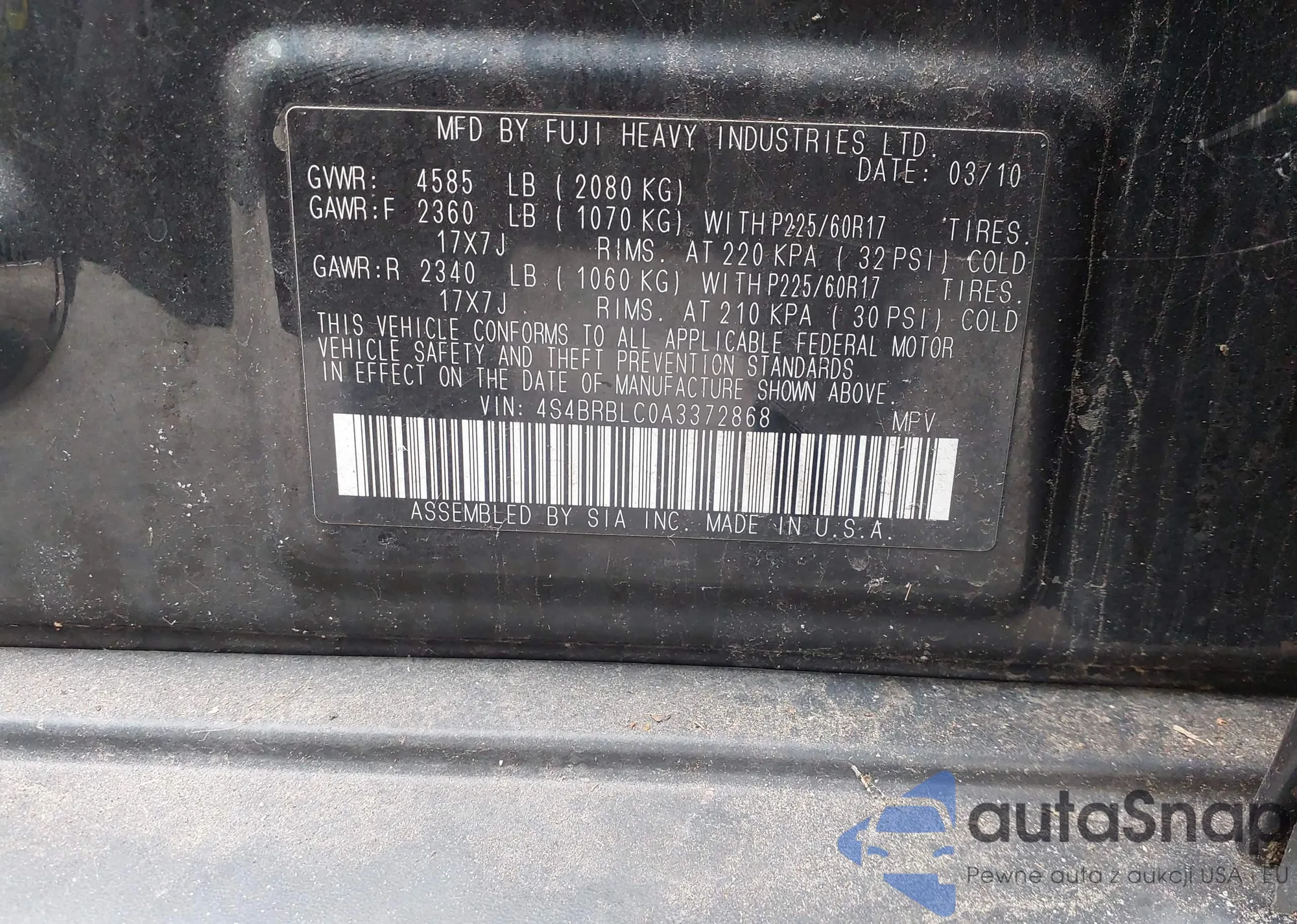 • VIN 4S4BRBLC0A3372868