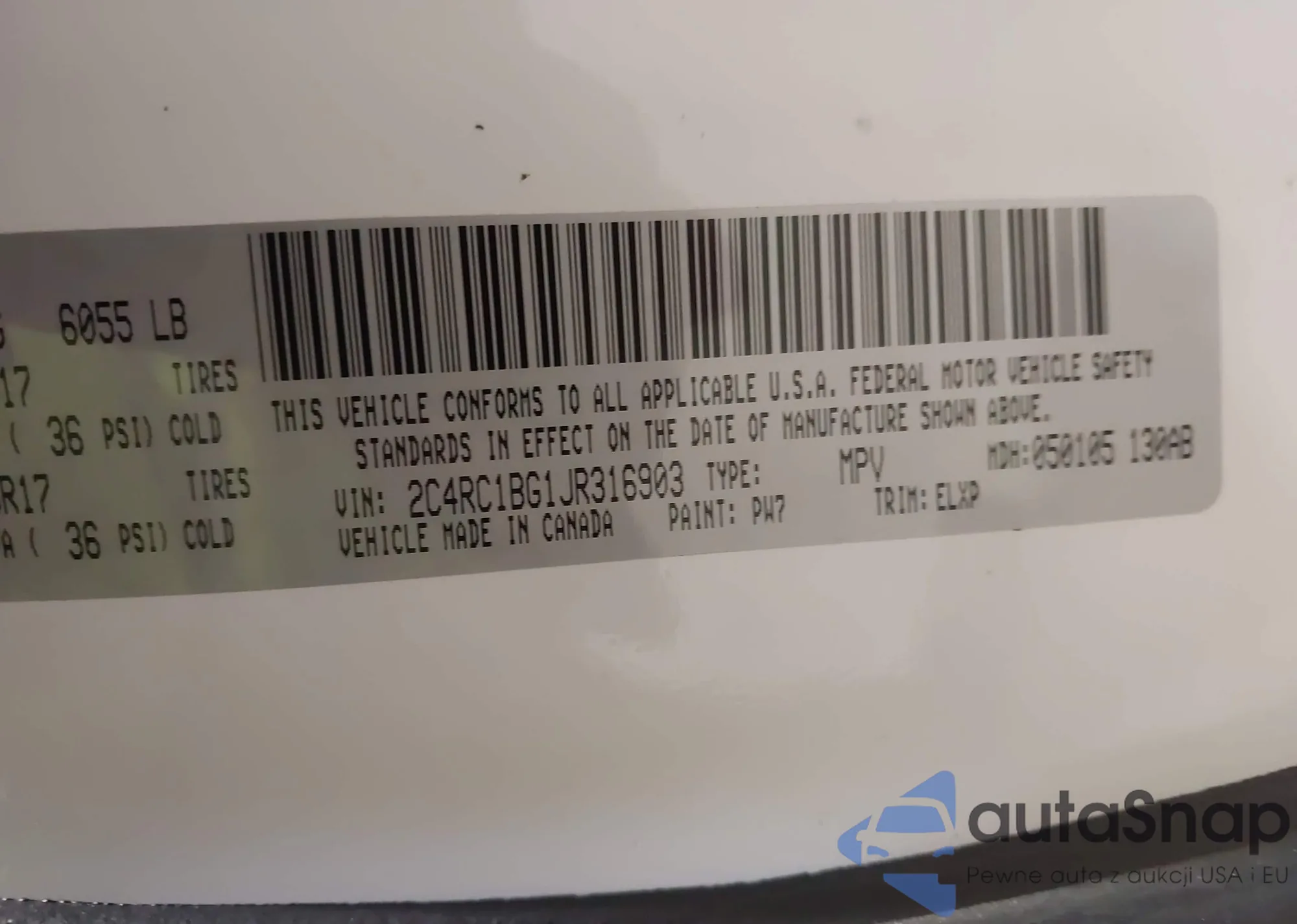 • VIN 2C4RC1BG1JR316903